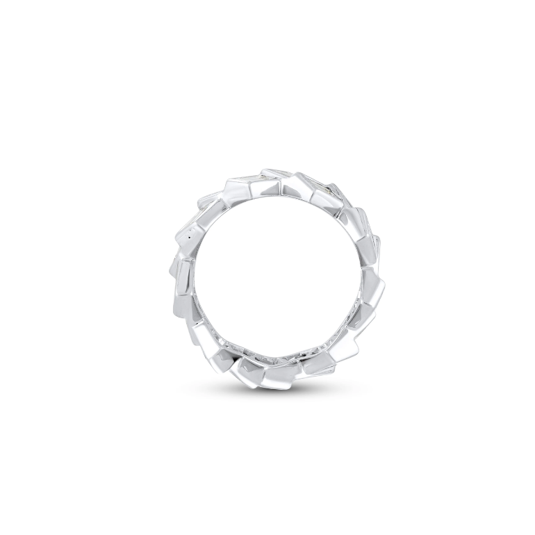 Notes: A playful take on the classic eternity band with 18 baguette diamonds stacked to elicit a zig zagged effect.