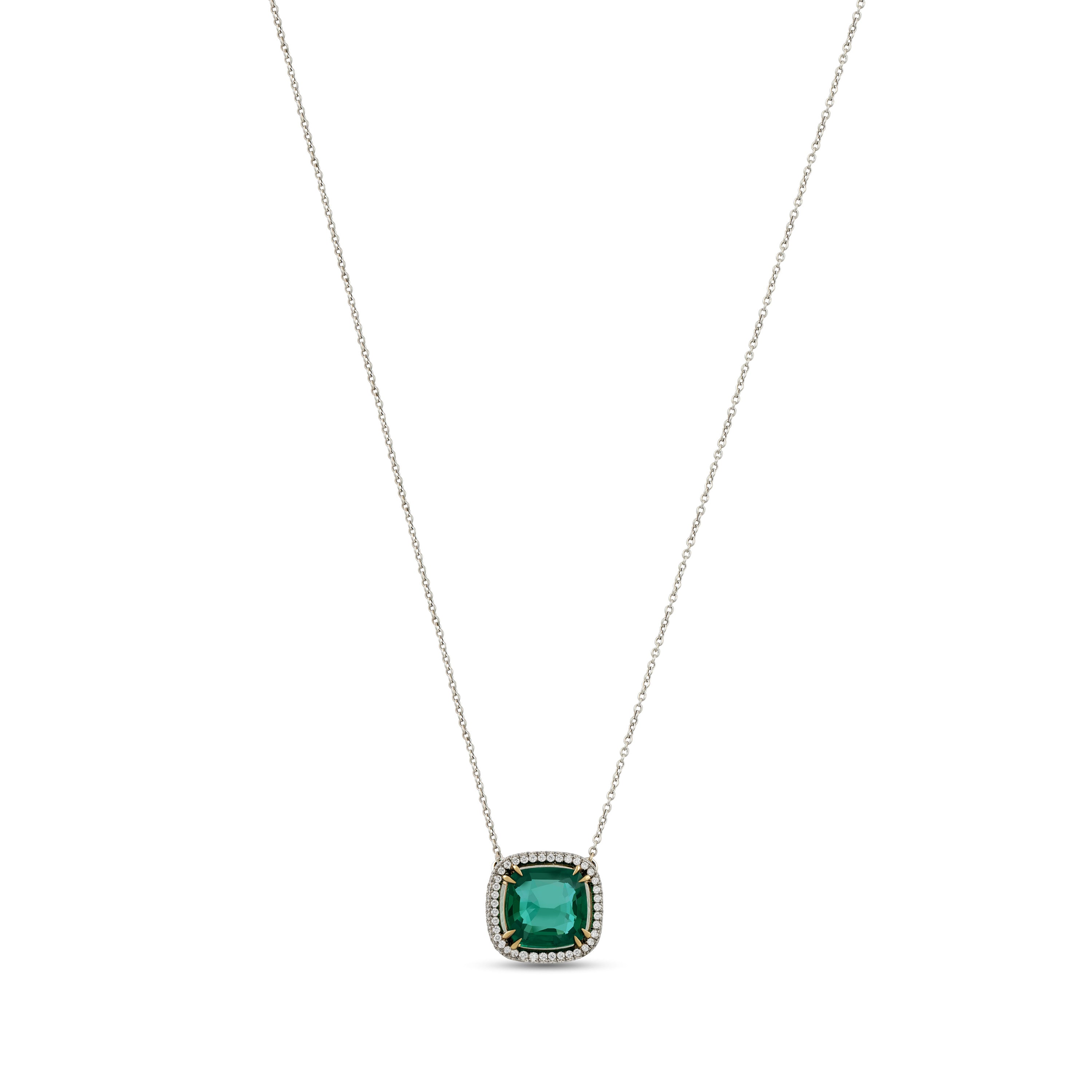 3.84ct Zambian Emerald and Diamond Pendant Necklace