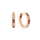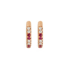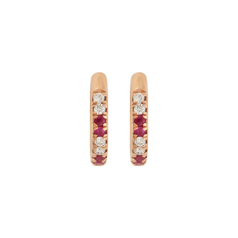 Ileana Makri's timeless hoop earrings are handcrafted from 18-karat gold and encrusted with white pavé diamonds and rubies. The delicate size makes them perfect for every day.
