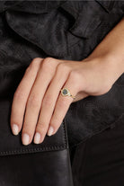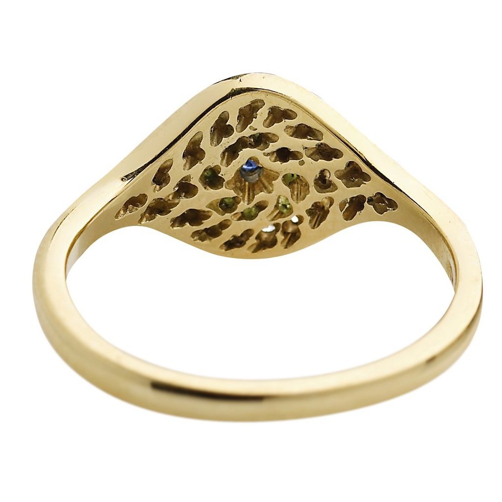 - White diamonds 0.18 ct, tsavorites 0.12 ct and blue sapphire 0.03 ct "iris" pavé-embellished, totaling 0.33-carats