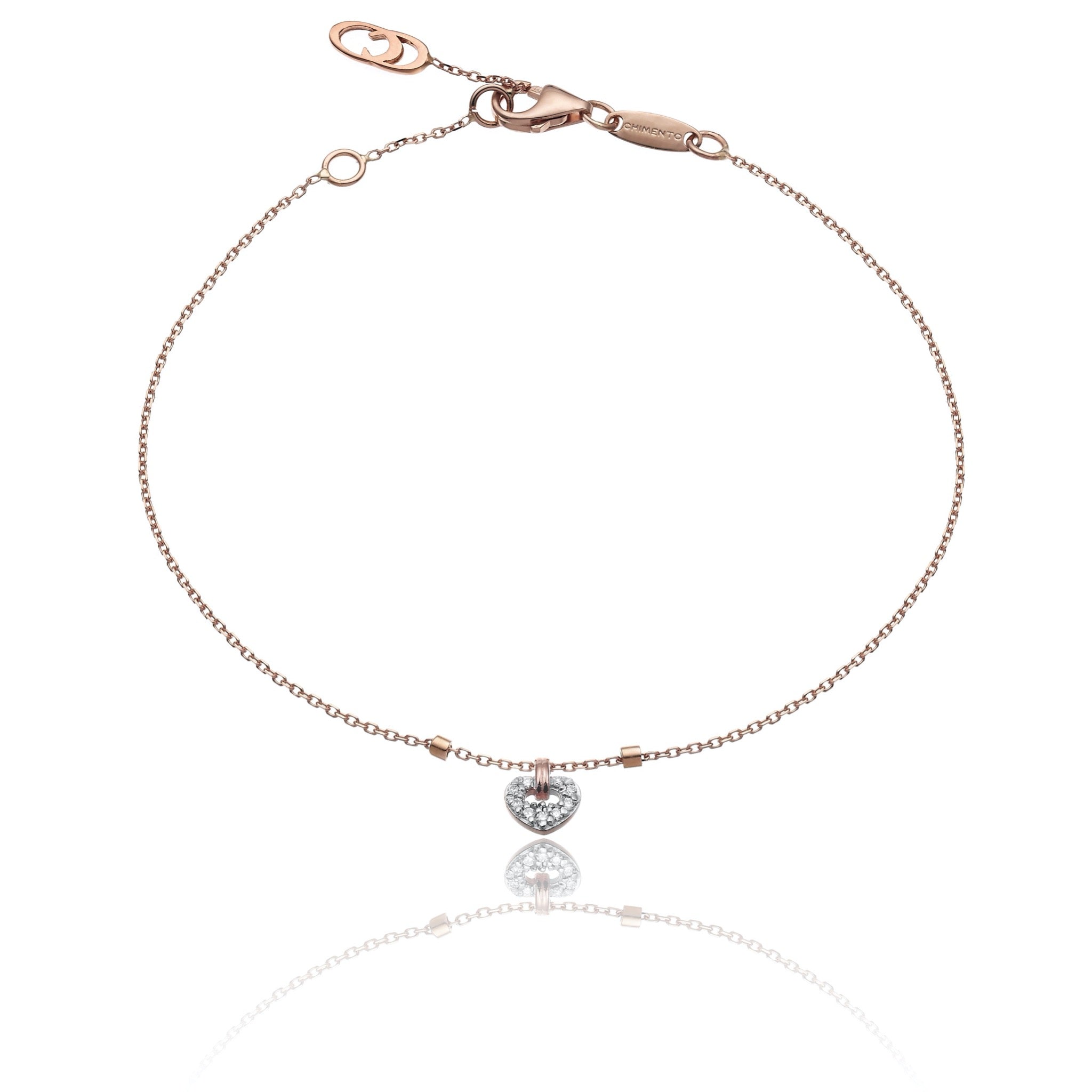 This dainty diamod heart hangs on a delicate 18k rose gold chain. Lovely on its own or with other bracelets from the collection. Established in 1964, Chimento is a family owned jewelry company based in Vicenza, the gold capital of Italy.