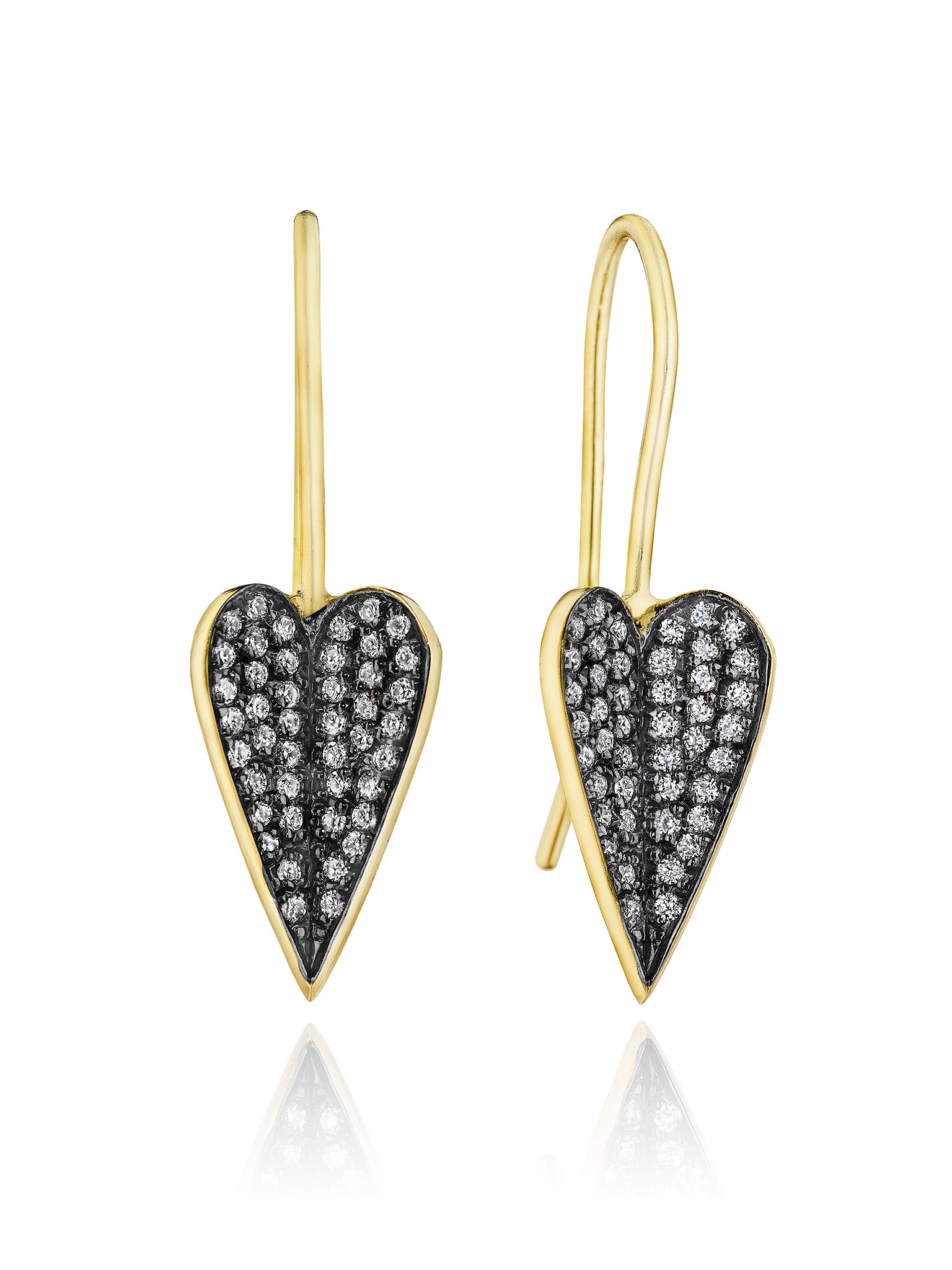 The Eros "folded" heart drop earrings are handcrafted from 18K gold and set with diamonds.