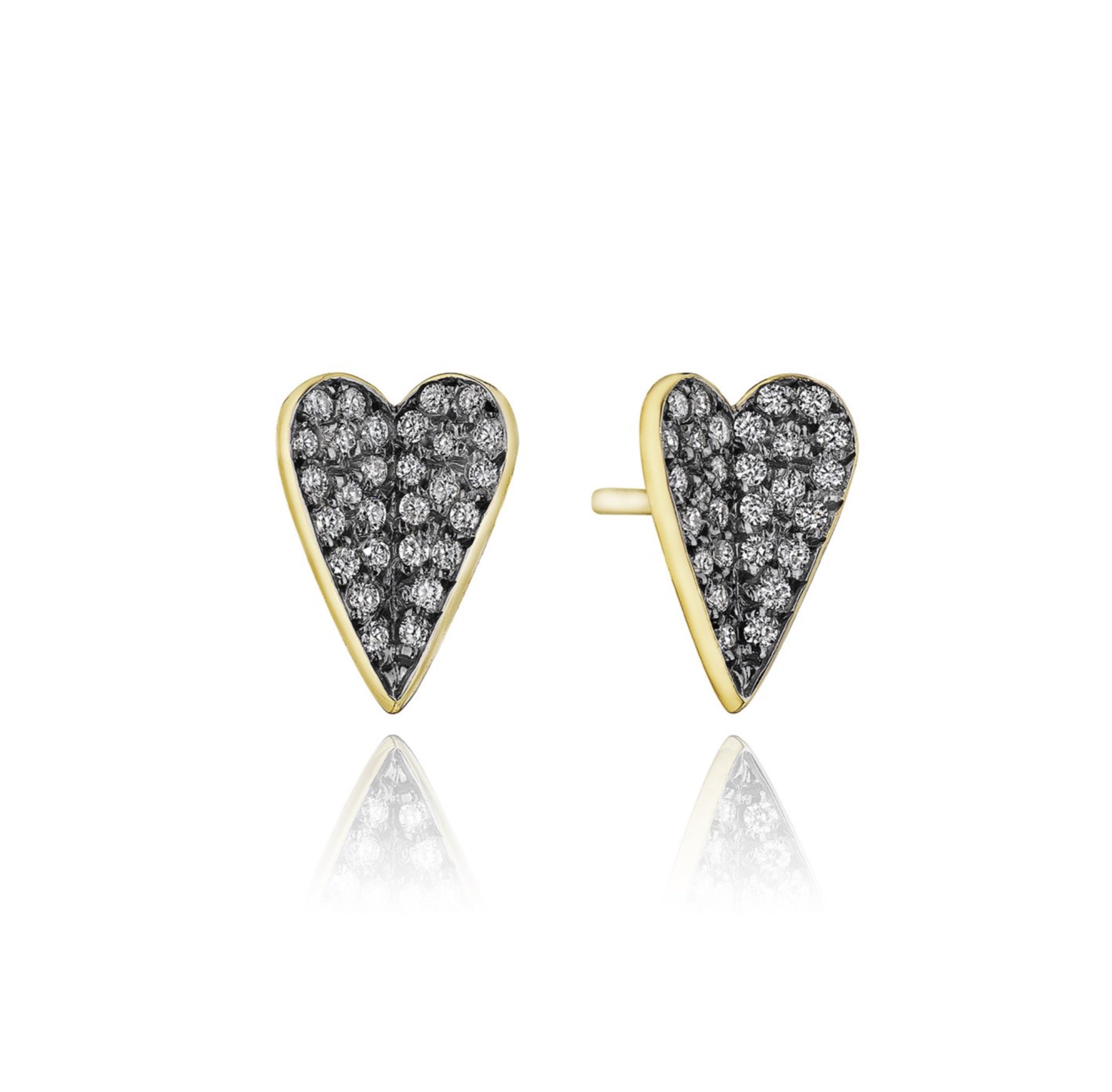 The Eros "folded" heart stud earrings are handcrafted from 18K gold and set with diamonds.