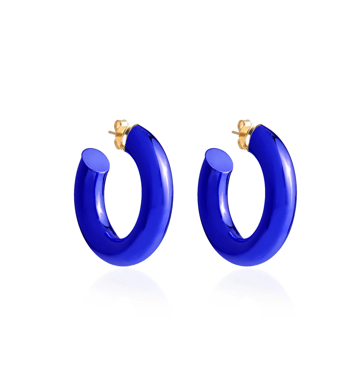 Faraone Mennella "Barbarella" 18K Gold Sterling Silver Hoop Earrings Small - Blue