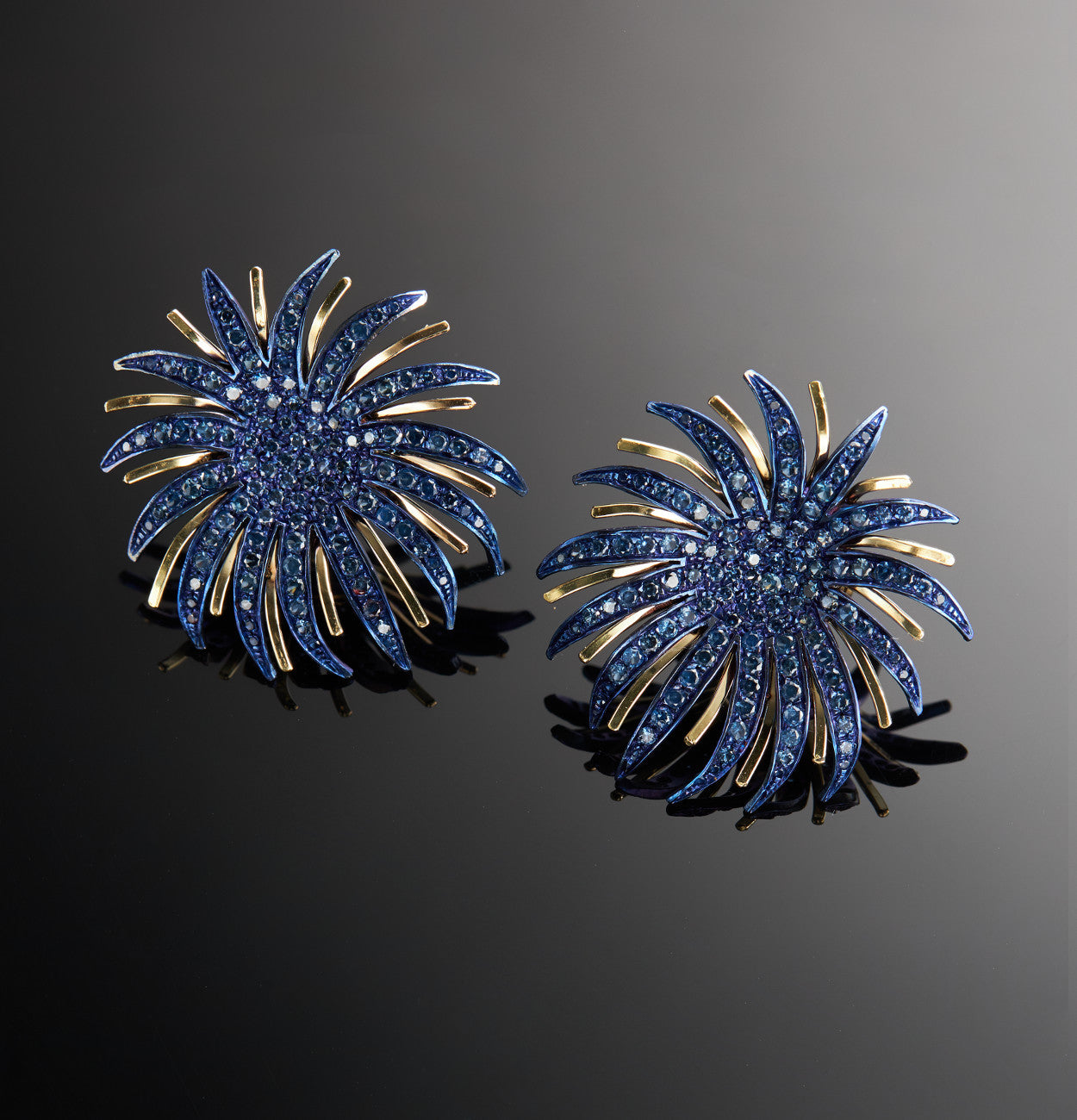 Faraone Mennella "Fireworks" 18K Gold and Blue Sapphire Earrings