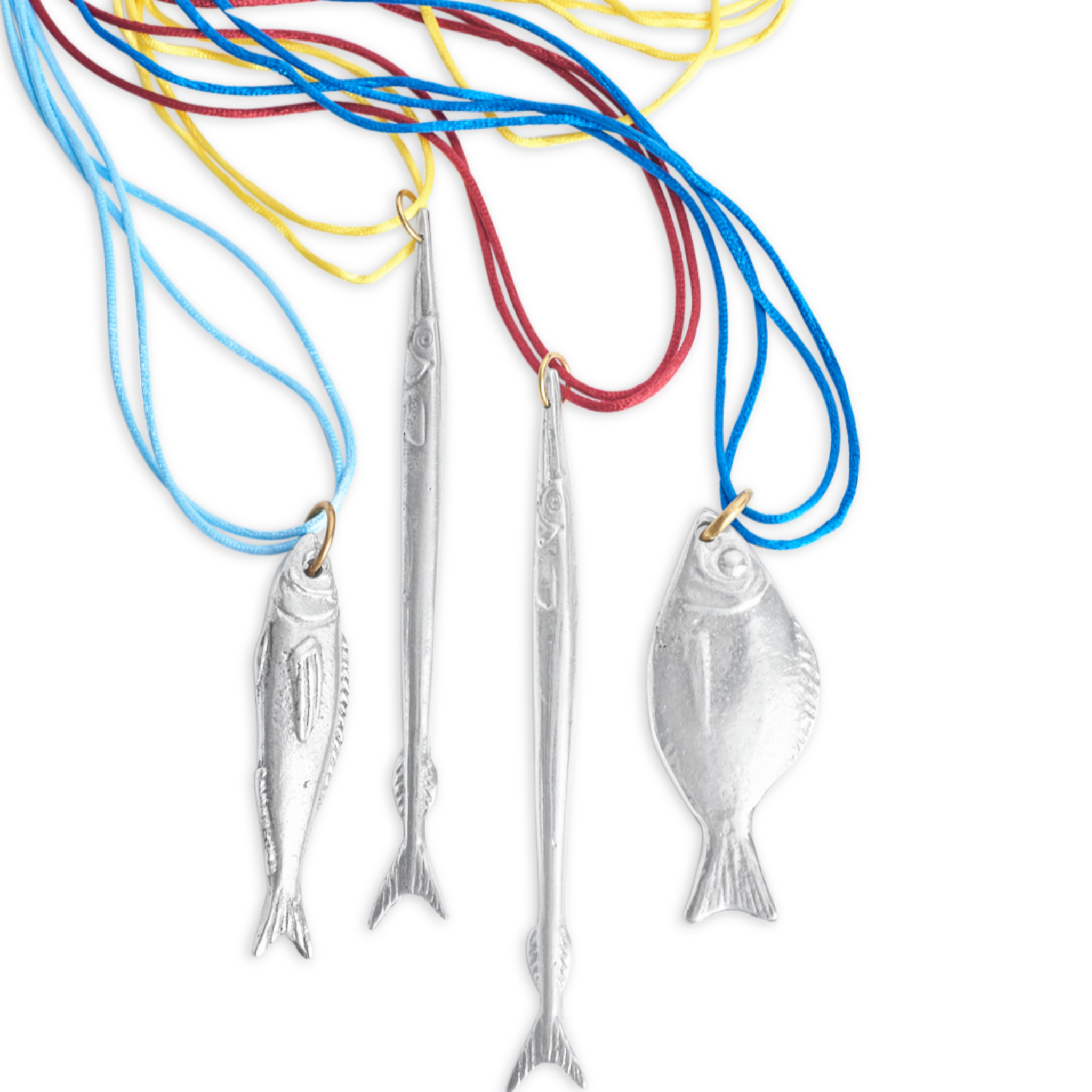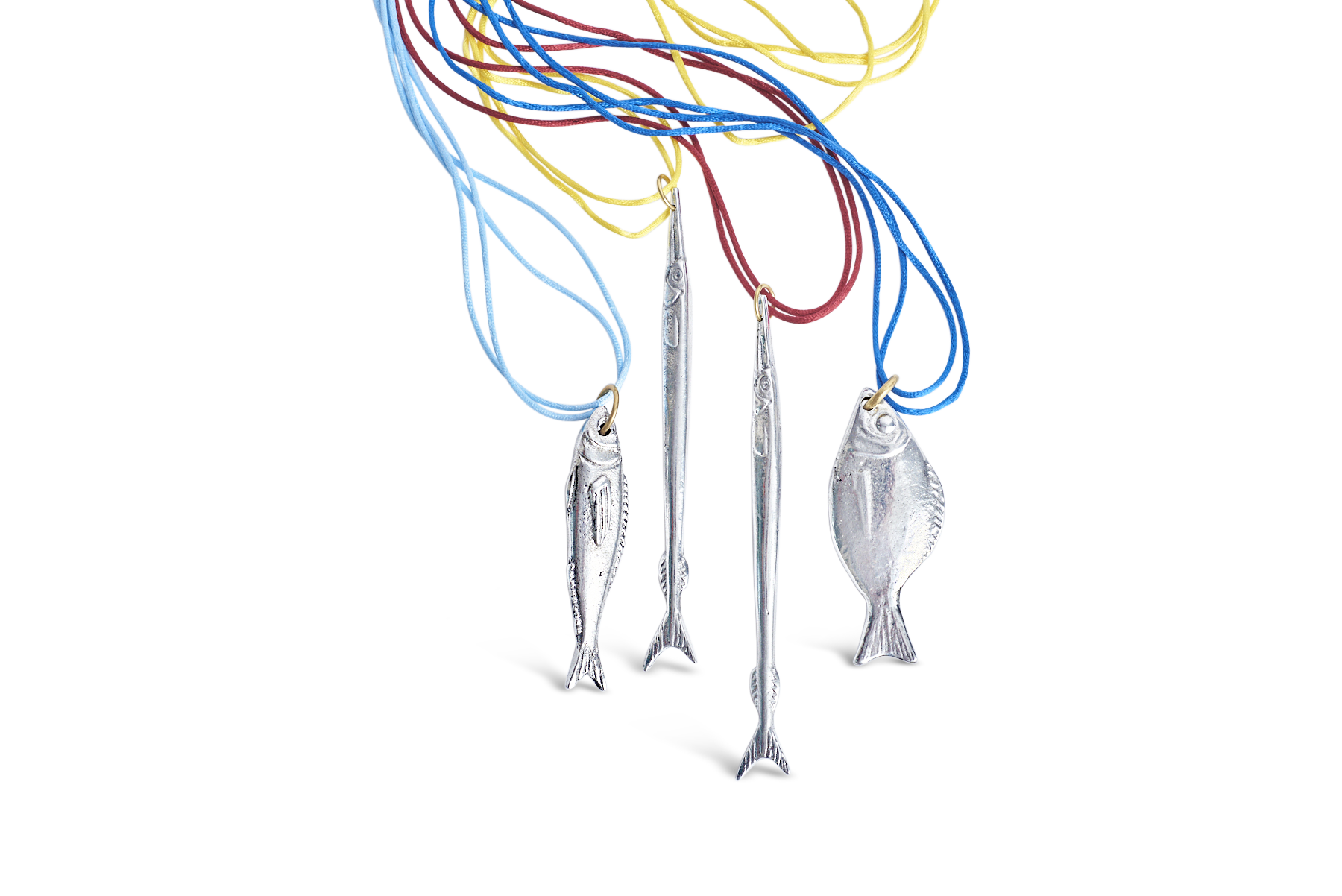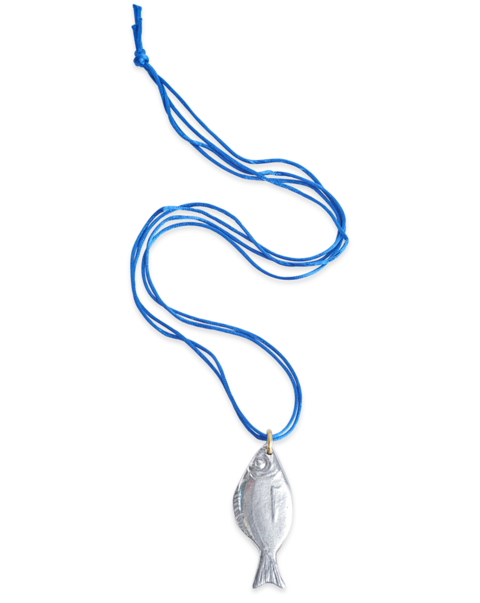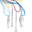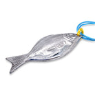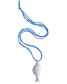 Inspired by the fish of the Aegean sea, this pendant makes a bold statement! The realistic, shimmering fish hangs from a double silk cord.