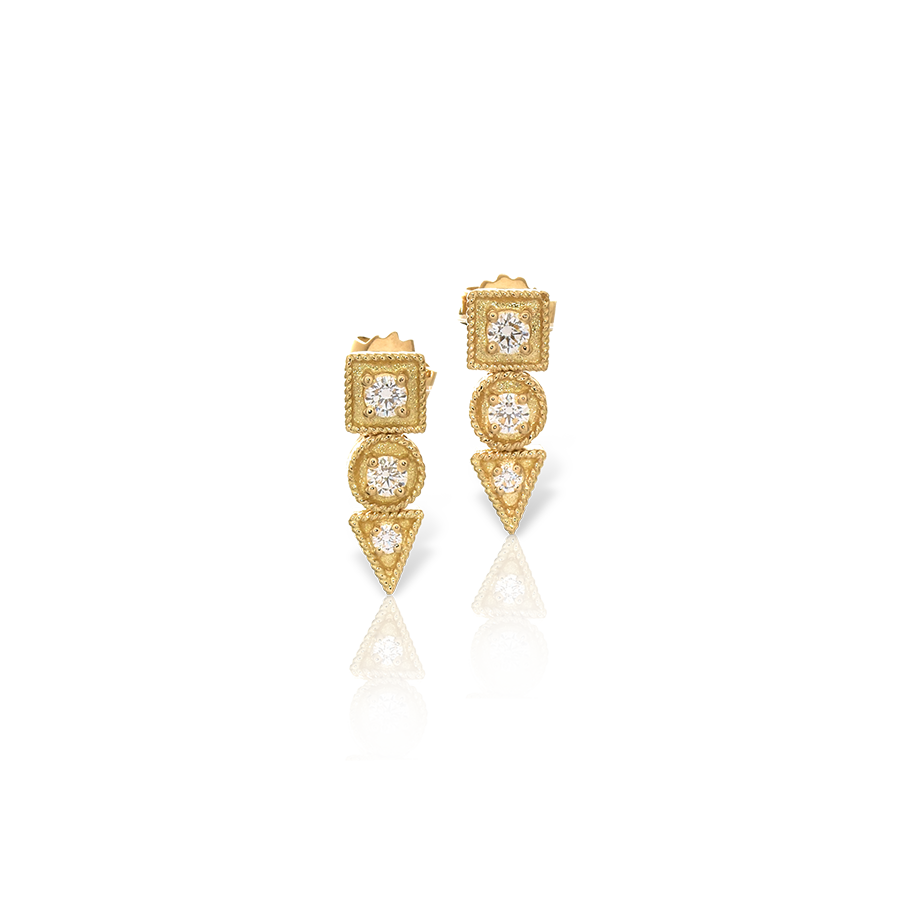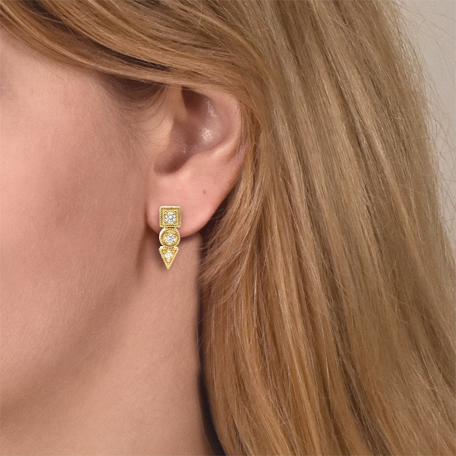 Theodora triple stud drop earring with posts in 18k gold and diamonds