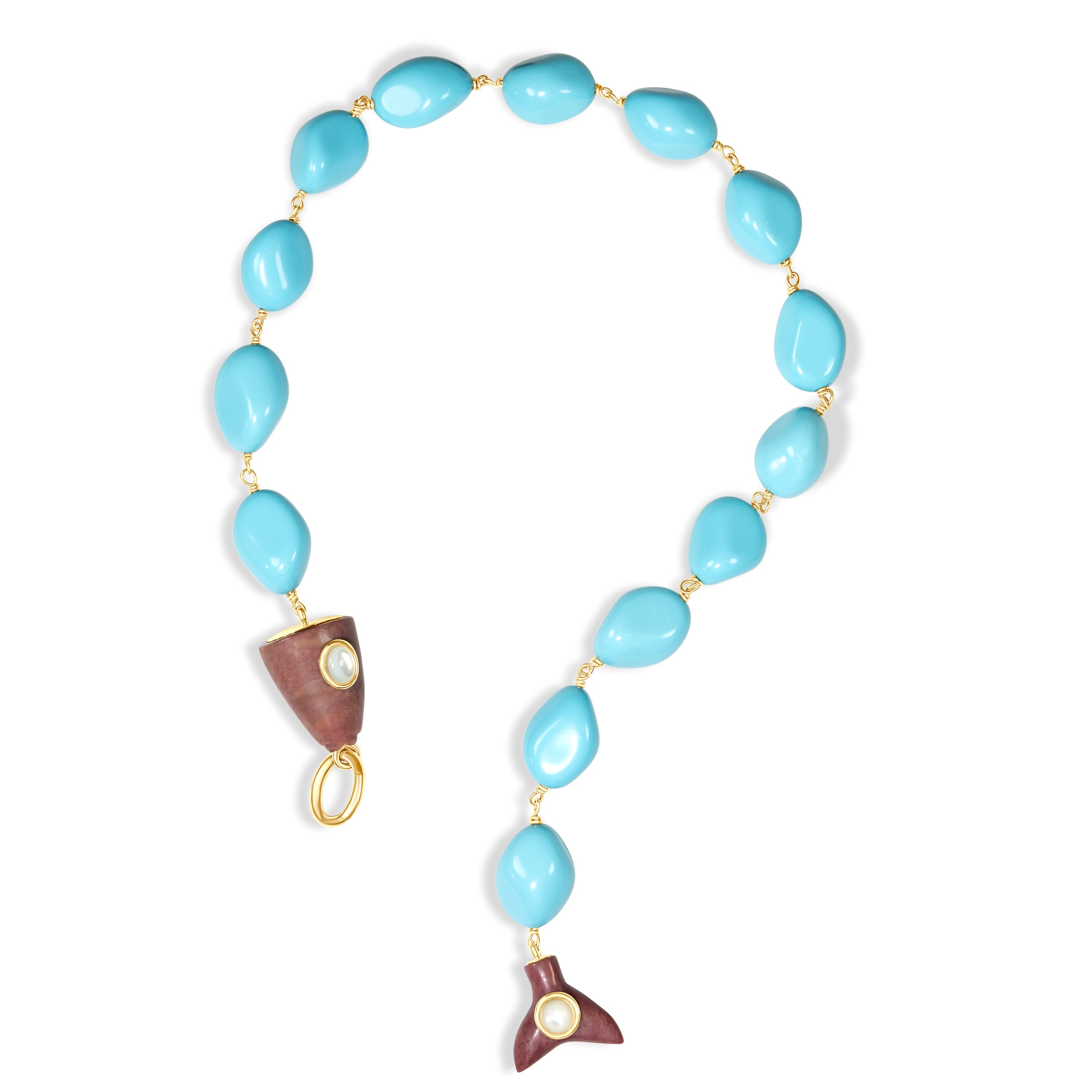 Grazia & Marica Vozza Turquoise and Rhodochrosite Head & Tail Necklace