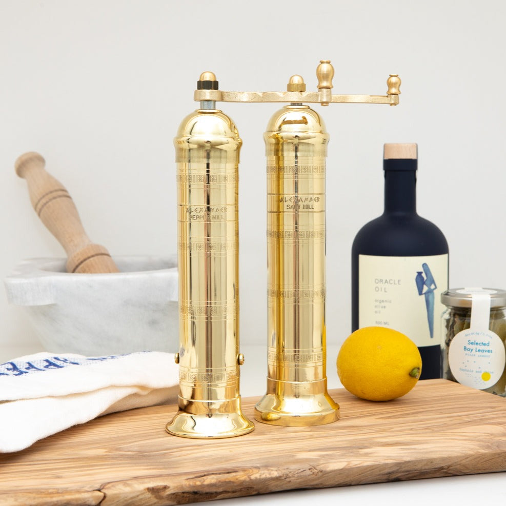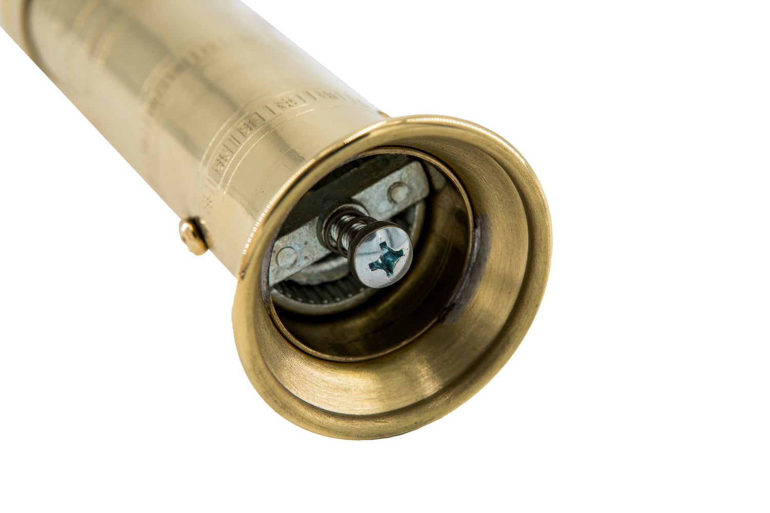 The Original Greek Mill is a unique piece of European tradition that is functionally the best in the world and handmade to exacting standards. While other mills simply crush the peppercorns, this unique grinding mechanism grabs each peppercorn and breaks it in half, then cuts each pieces into even smaller pieces, maximizing flavor and aroma. Based on a coffee mill that was used by Greek soldiers in the early 20th century, the design includes a flanged base for stability and a durable all-metal body. The tool steel grinding mechanism adjusts from fine to coarse. Available in copper and brass.