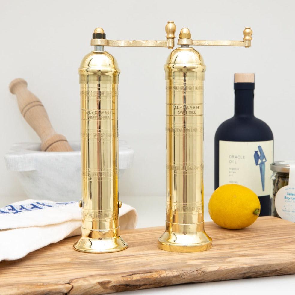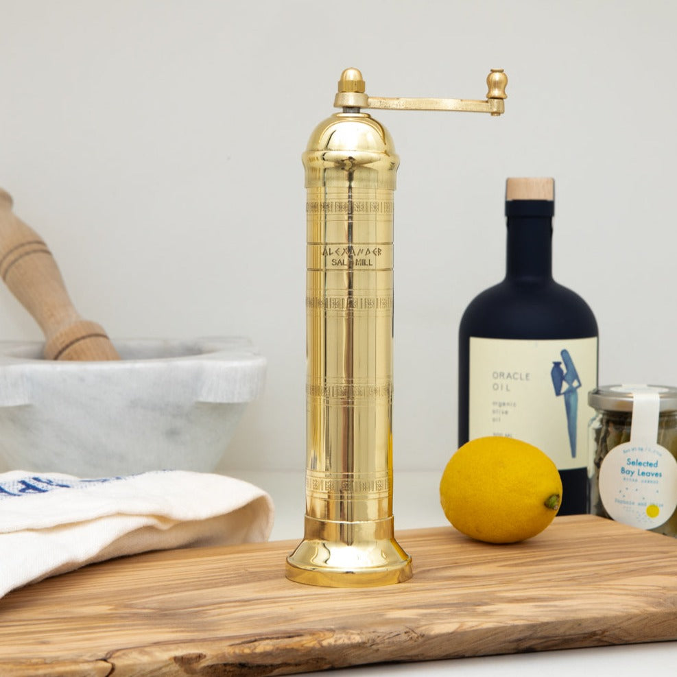 The Original Greek Mill is a unique piece of European tradition that is functionally the best in the world and handmade to exacting standards. Based on a coffee mill that was used by Greek soldiers in the early 20th century, the mill design includes a flanged base for stability and a durable all-metal body. Built as a pair with the pepper mill, the salt mill a plastic grinding mechanism, as salt corrodes metal. Available in copper and brass.