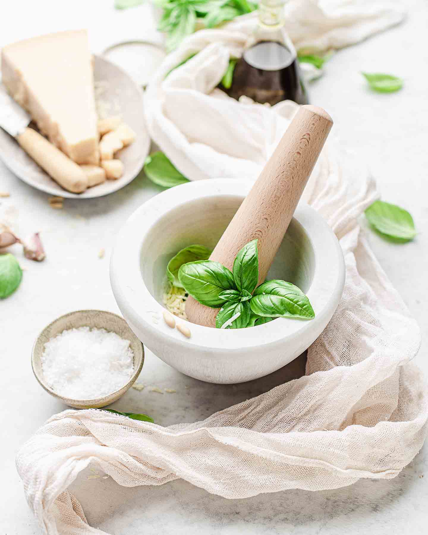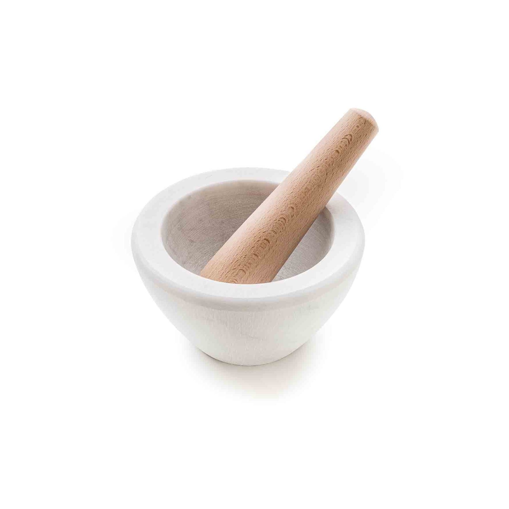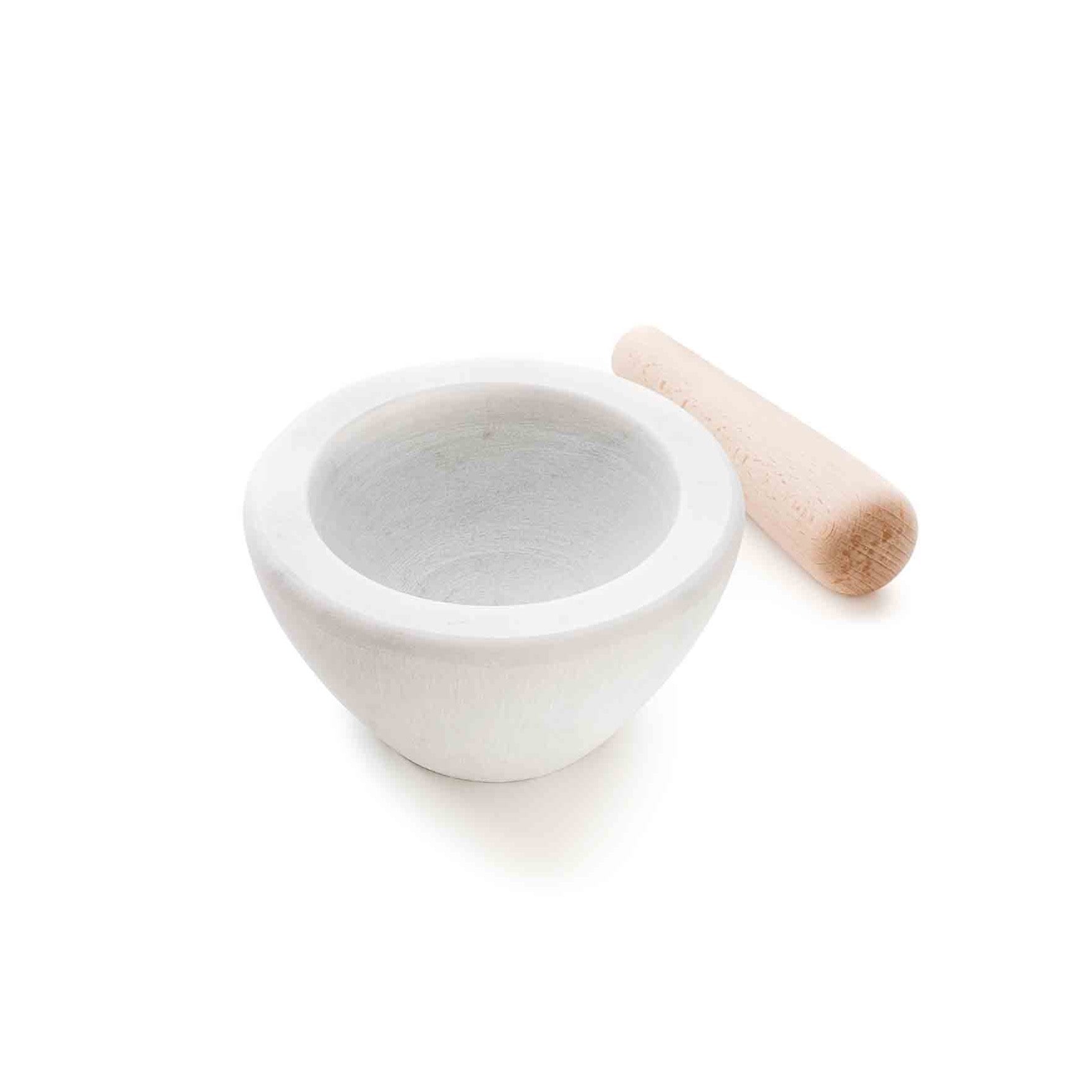 The perfect mortar for making pesto!  Handcrafted from white Carrara marble.  The pestle is made by Fratelli Levaggi , skilled wood artisans.