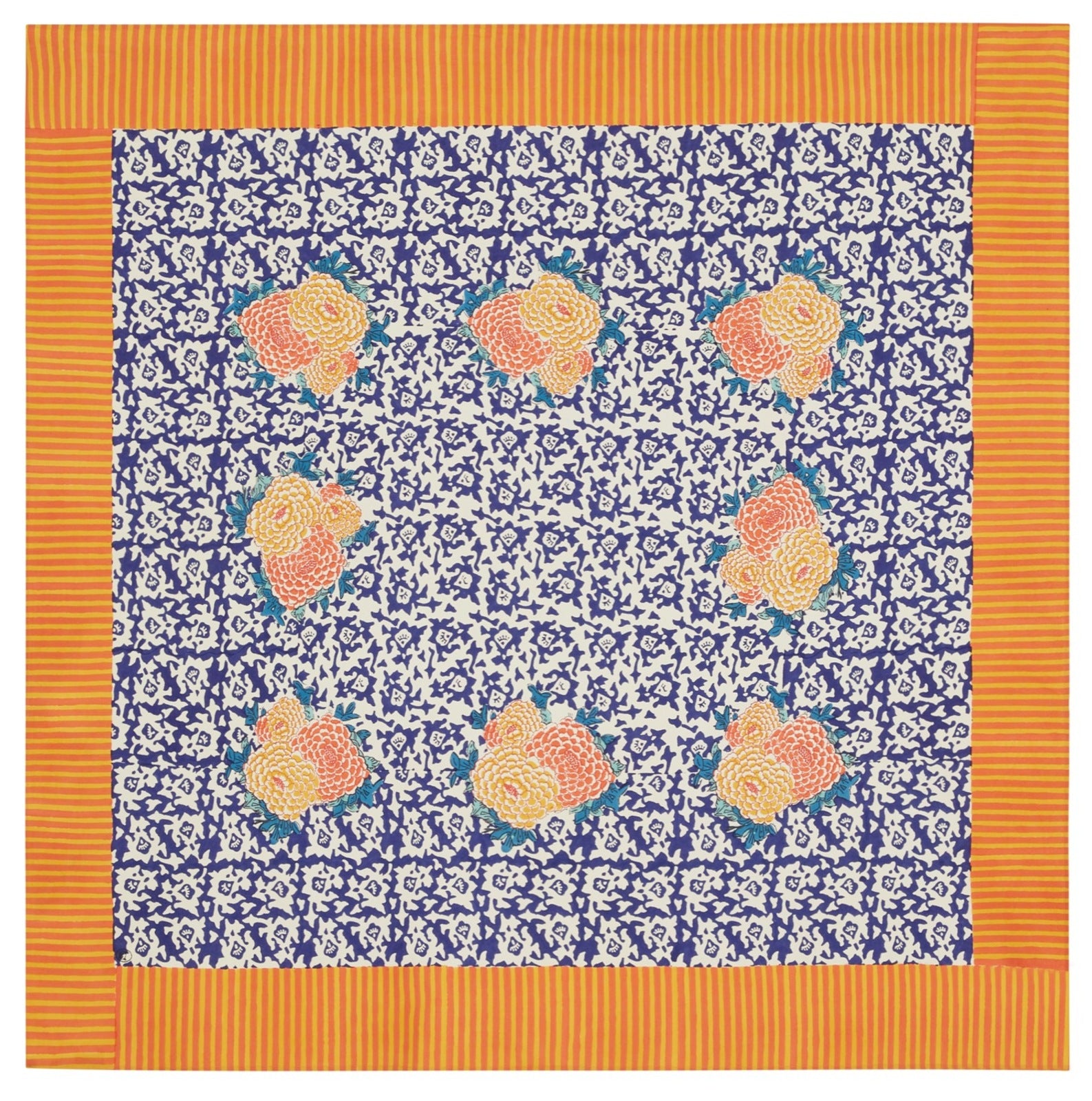 True to Italian tradition, mezzeri are cotton cloths that can be used both decoratively and practically throughout your home as well as in outdoor spaces. Incredibly versatile, this larger mezzero can be used on a dinner table for four, as a centrepiece for a larger party or in any outdoor setting, and will always add a personalized touch of color and style to any space or event. Meticulously handcrafted in India using the artisinal technique of blockprinting, charming imperfections make each and every Lisa Corti mezzero unique.
