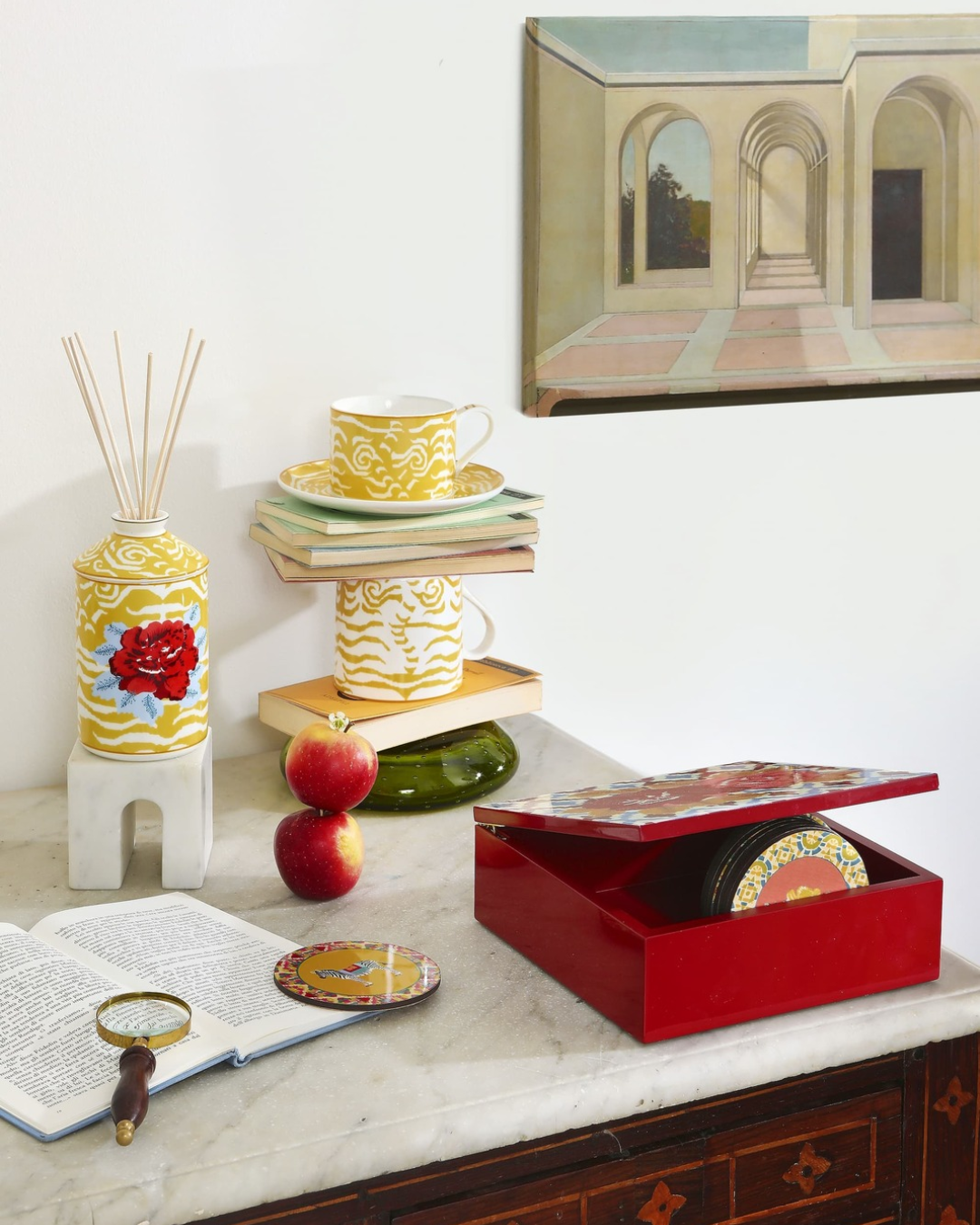 Discover Lisa Corti’s lacquered jewellery boxes, a vibrant addition to the home decorative accessories collection. The lids are adorned with signature Lisa Corti motifs, drawn from the brand’s rich heritage and conceived to be layered, cherished, and collected over time. Perfect for storing treasures or adding a decorative accent to your space.