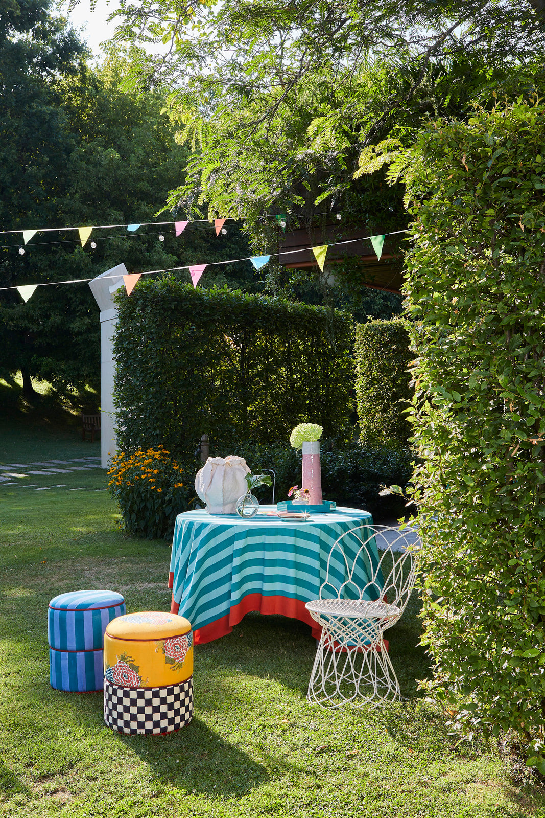 True to Italian tradition, mezzeri are cotton cloths that can be used both decoratively and practically throughout your home and outdoor spaces. Incredibly versatile, this all-encompassing format can be used as the perfect setting for a 10 to 12 seater table , an outdoor buffet or beach picnic, and also doubles as an airy king size bedspread or colorful cover to transform your favourite sofa. Meticulously handcrafted in India using the artisinal technique of blockprinting, charming imperfections make each and every Lisa Corti mezzero unique.