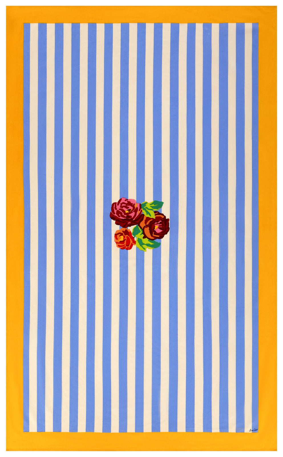 Lisa Corti has joined forces with Spanish design duo Blanca Miró and Maria de la Orden of La Veste to create a unique, sunshine-infused textile collection set to enlighten the home all year round. Reimagining the Lisa Corri iconic Nizam Stripes, the joint venture of the two atelier's ethos runs into the La Veste X Lisa Corti pieces. The Nizam Stripes in Light Blue are crafted in India. This screen-printed collection features the Nizam flower, reminiscent of French Aubusson carpets, set against light blue and cream stripes inspired by Persian miniatures. Each piece, bordered in delicate yellow, exudes unique, subtle charm. Stripes Light Blue-Natural