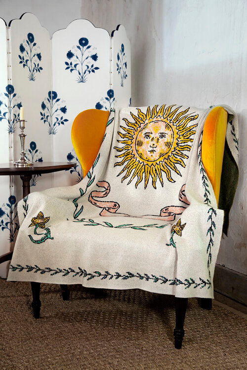 Moon and Sun, this delightful throw is is part of the Fee Greening x SAVED collection.