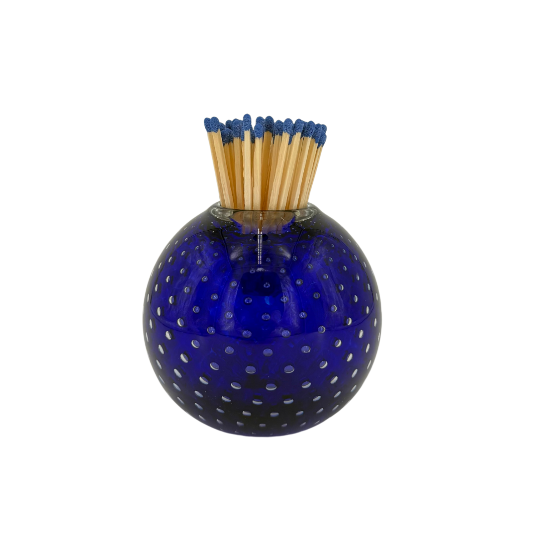 Handblown Glass Match Striker with Matches in Cobalt Blue