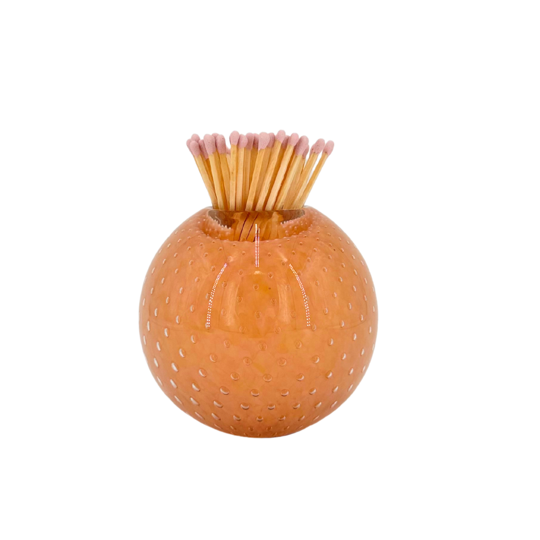 Handblown Glass Match Striker with Matches in Peach