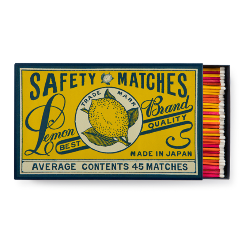 Are you looking for the perfect matches for your summer tablescape? Well we just might have the design for you! This new giant 'Lemon Safety Matches' box cannot help but exude the feelings of summer. Inspired by a vintage food label with its bright yellow background and lemon illustration, this giant matchbox is the perfect addition to summer dinning - placed next to a pitcher or homemade lemonade you'll have a winning centrepiece.