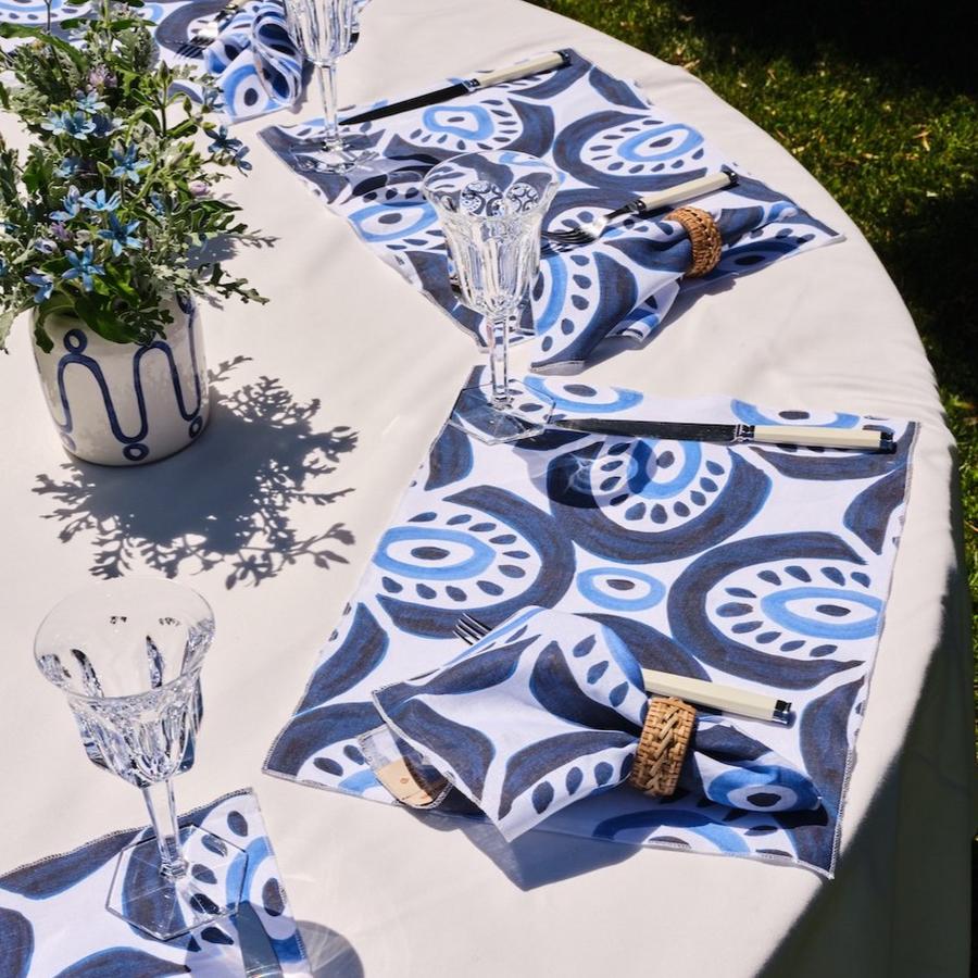 Beautifully hand-stitched in Themis Z's own atelier in Athens, these 100% linen napkins are as crisp and elegant as can be and come in sets of two. Hand-printed with the Mosaic pattern in Blue, Green or Beige, they add a touch of glamor and work perfectly with Themis' colorful porcelain or simple white dinnerware.