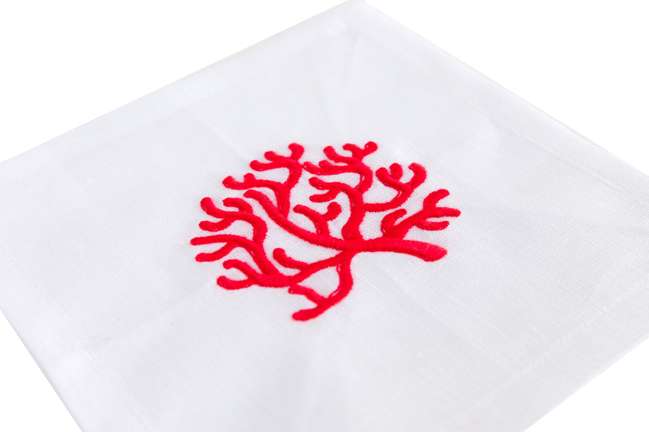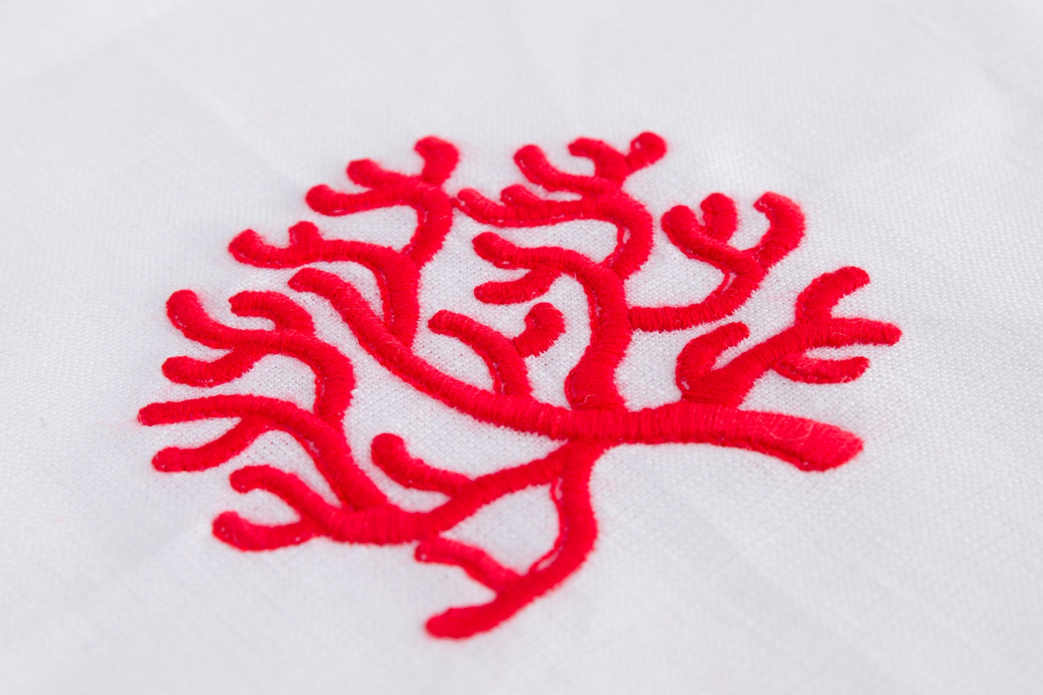 A collaboration between Via Coquina and Matouk, this exclusive, heirloom quality collection features an embroidered coral motif. Easy to care for, this fabric has the textural beauty of pure linen.
