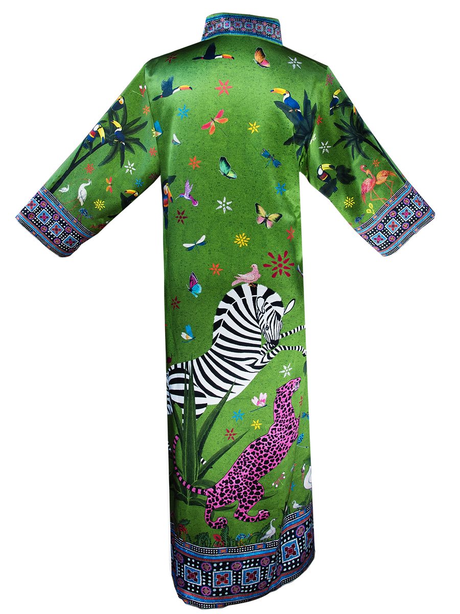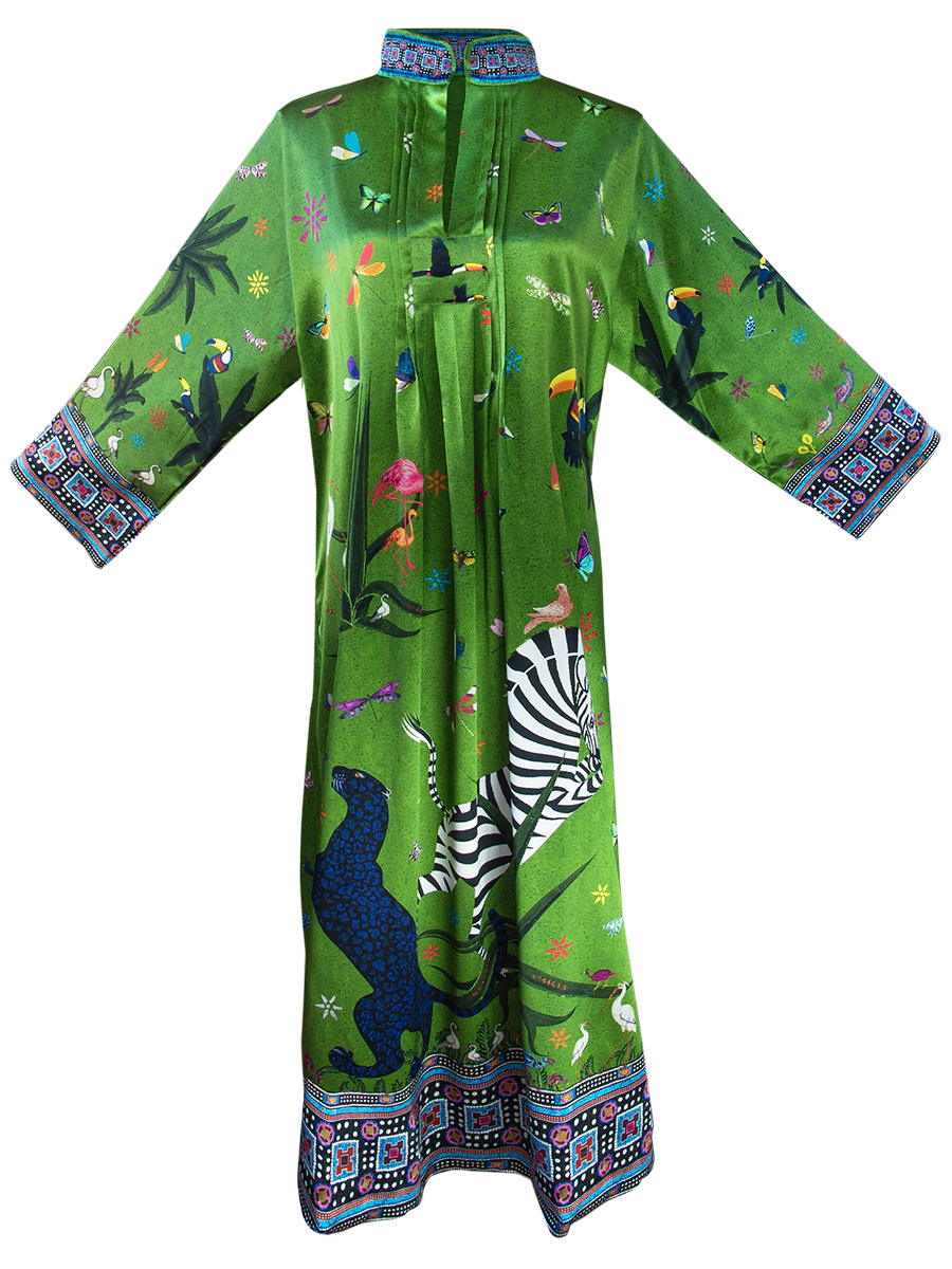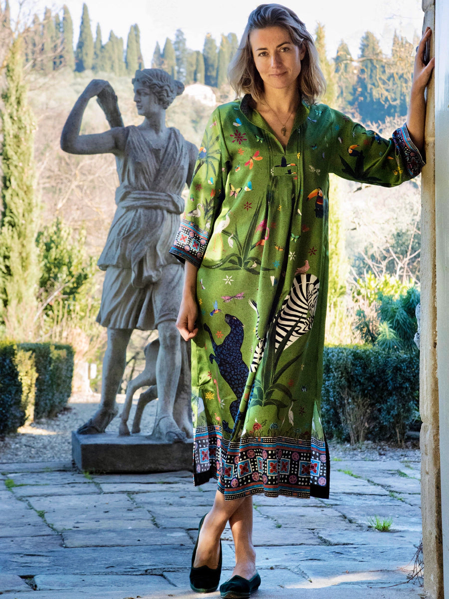Ortigia Sicilia Silk Jungle Green Kaftan