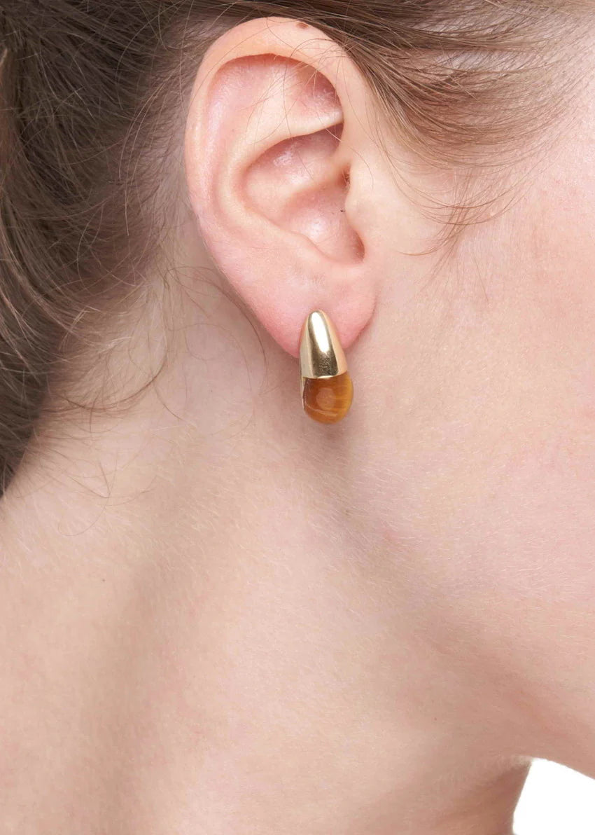 18K gold gocce earrings with tiger eye