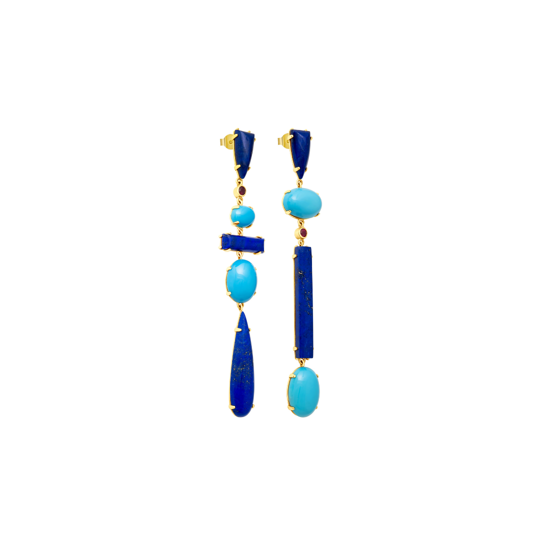 Elena Votsi 18K Gold, Turquoise and Lapis Lazuli Earrings