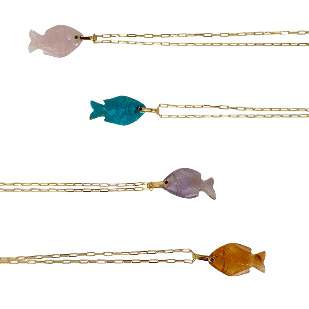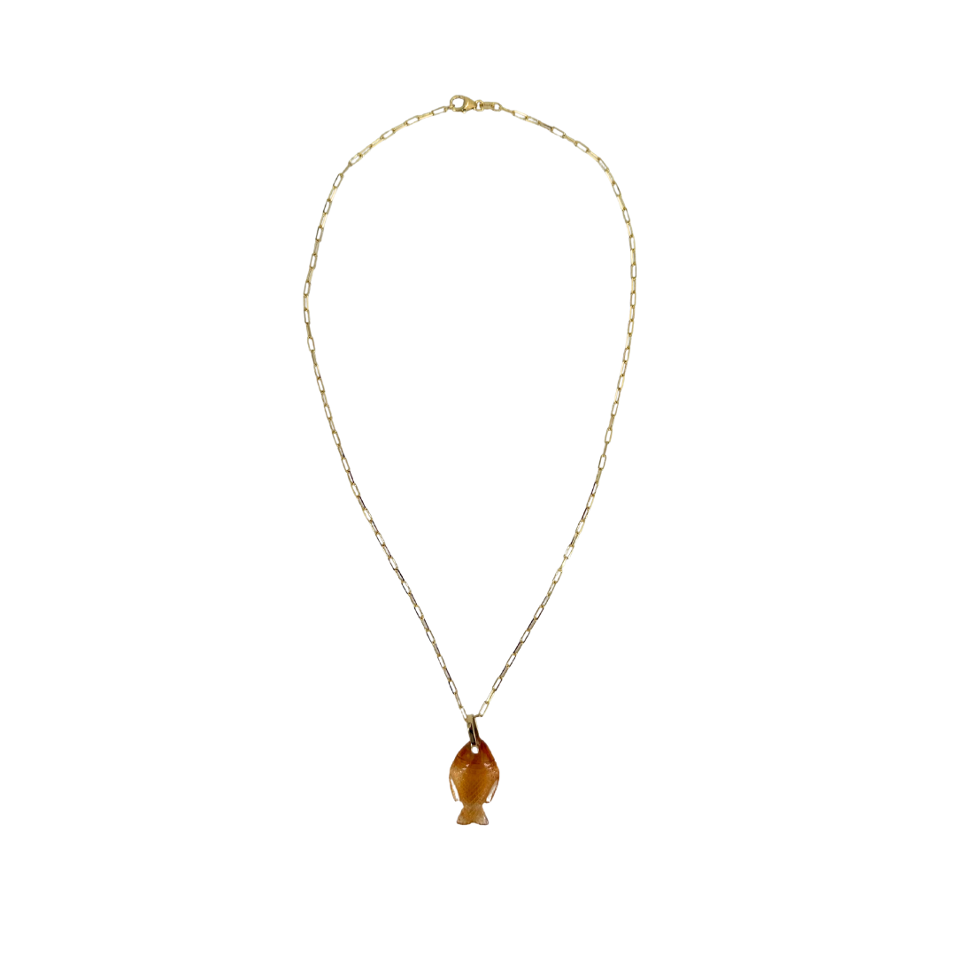 Elena Votsi Gold and Citrine Fish with 18K Gold Chain