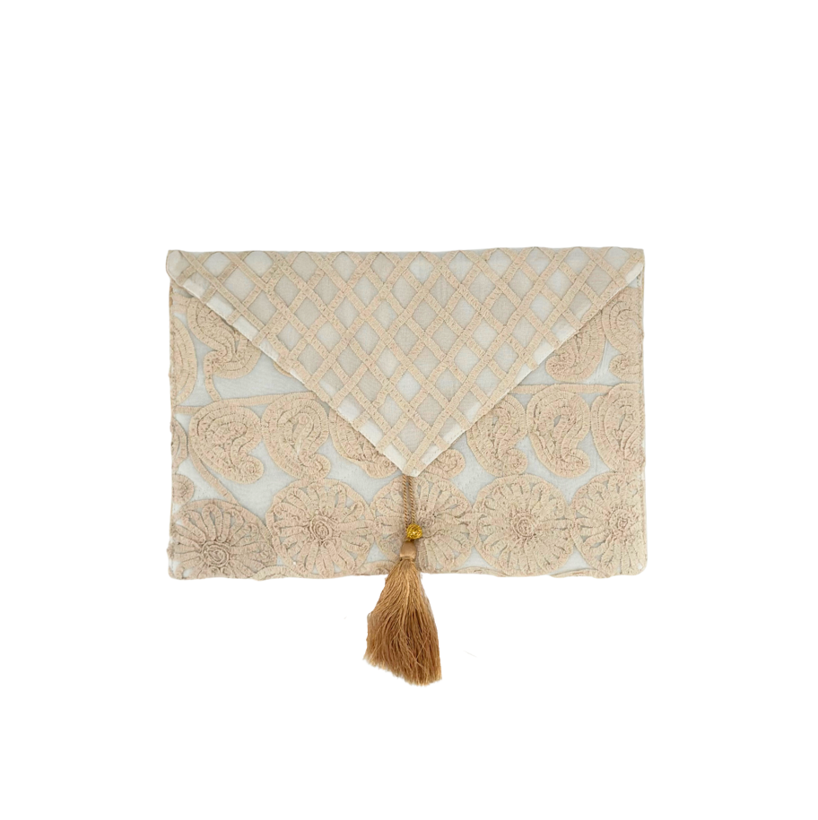 This envelope clutch bag is crafted from quilted cotton and silk and features an interior  pocket.