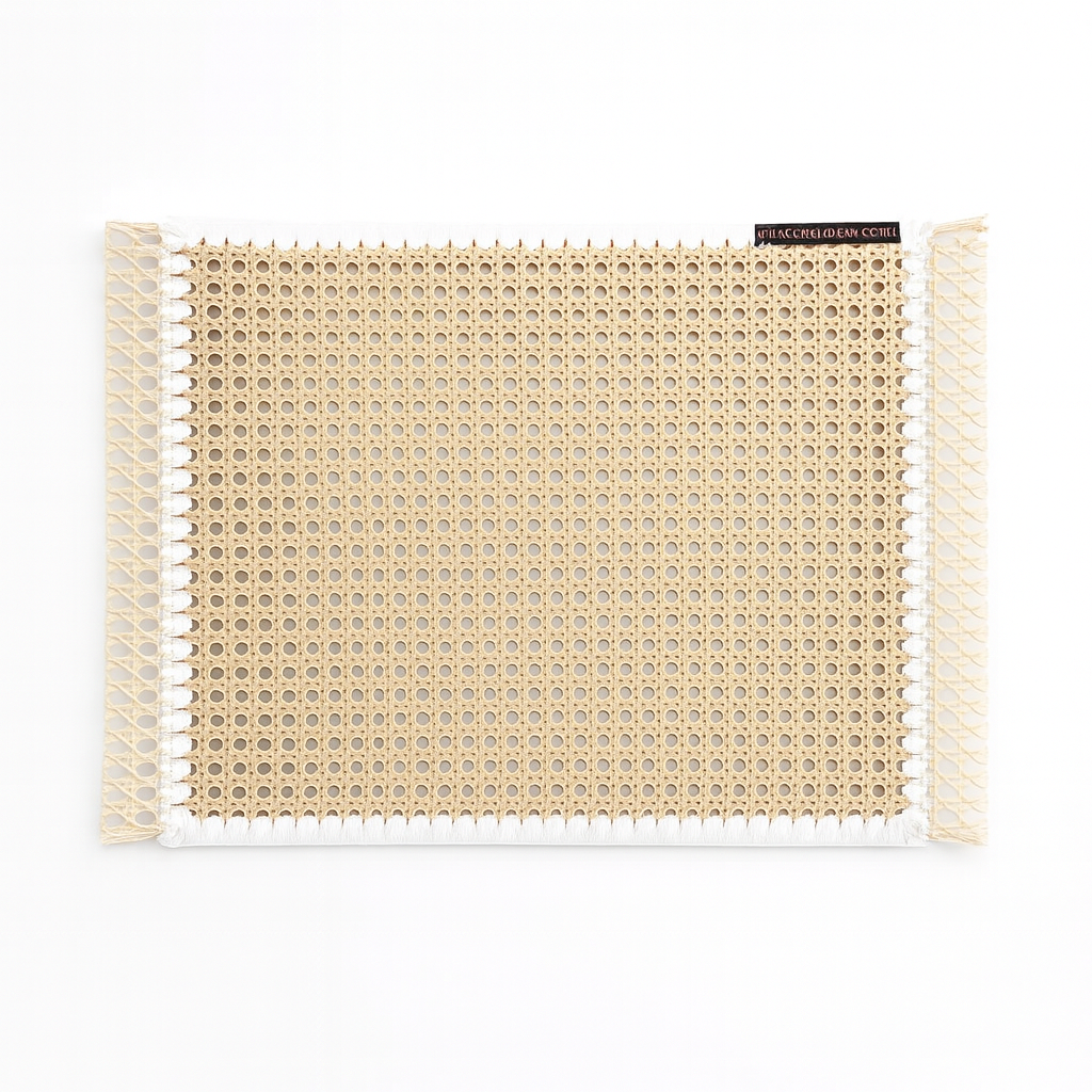 The Wicker collection is composed of a placemat, towel ring, candle large and medium, and two sized baskets. These placemats are a showstopper at any occasion; from a dinner party to displaying them on an outdoor table, in a yacht or on a seaside veranda. Their moldable nature, being made of wicker and waterproof yarn, makes them suitable for various occasions which is their inherent beauty, a perfect gift really. The set consists of four placemats.