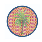 The Lisa Corti Hima Palma design modernizes a tri-coloured ikat featuring a central pictorial palm. Utilizing Italian sublimation printing, the design vibrantly showcases the palm in hues like peacock, red, gold, and blue against Corti's trademark colours. A contrasting block-colour border infuses the classic palm motif with a contemporary edge, consistent with Lisa Corti's signature style.