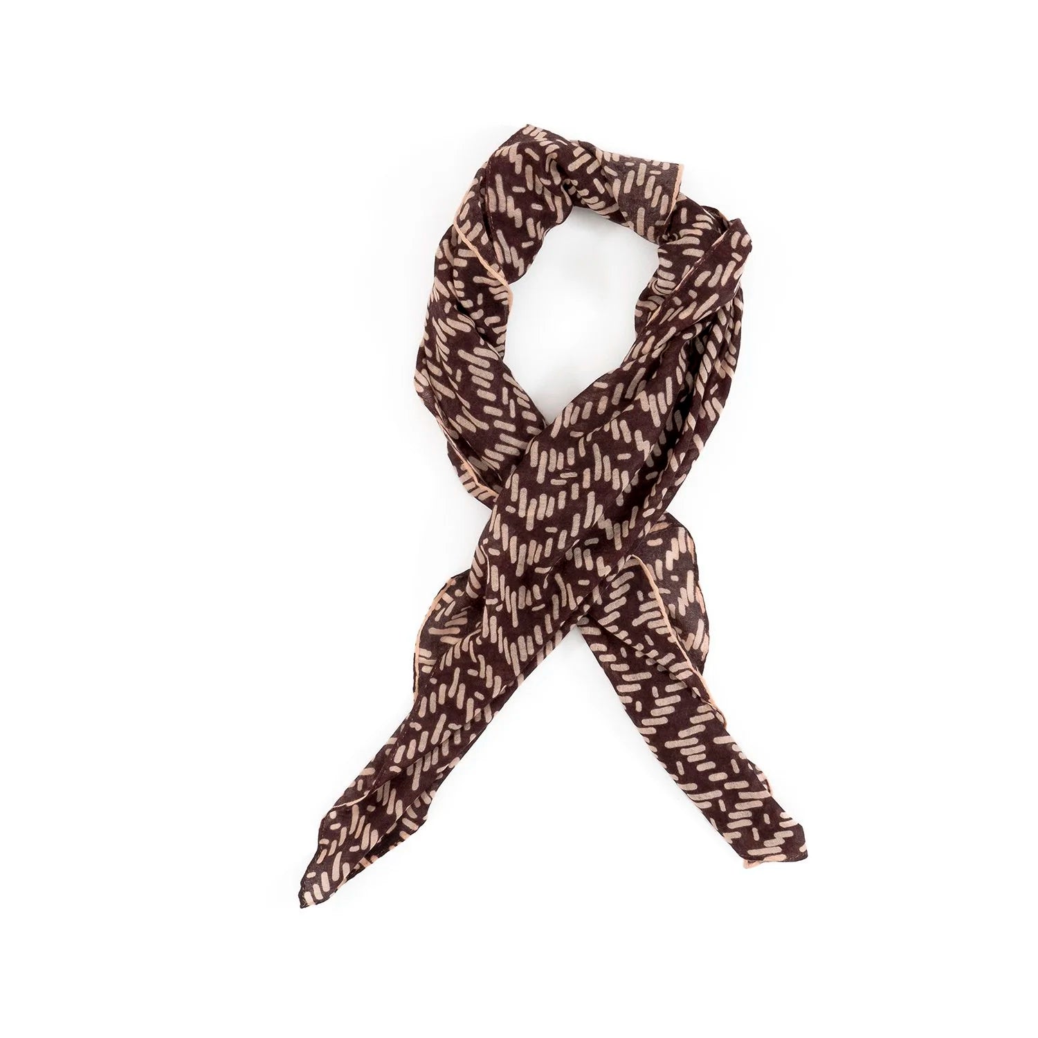 This collection of scarves is exquisitely hand-spun and hand-woven creating an even more luxurious suppleness of hand and texture. Block printed and finished with a hand stitched handkerchief hem.