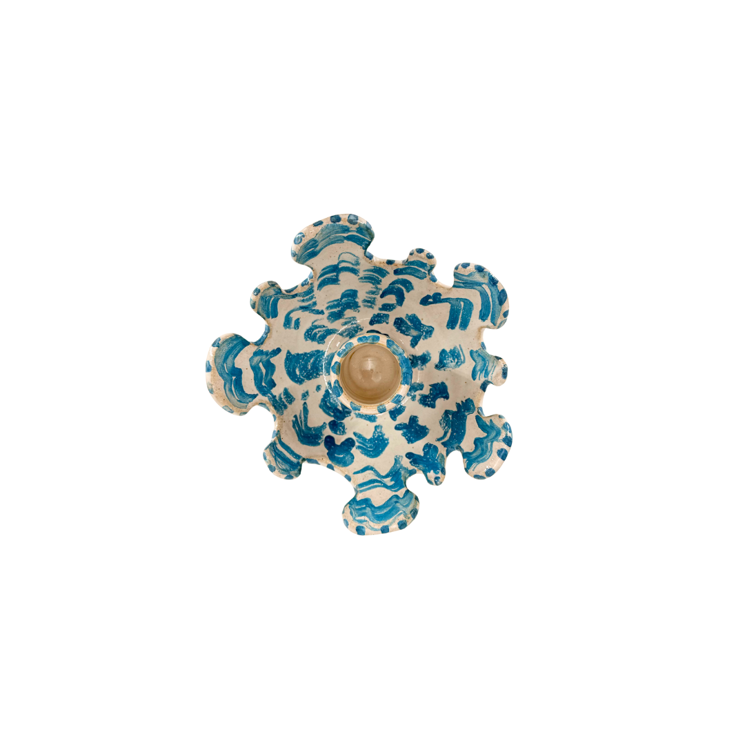A unique handmade and hand painted piece to brighten any table. The Sea Anemones were made on the wheel by Anthony Shapiro's studio in Cape Town. Each Sea Anemone was hand cut with a unique profile, and then painted with a unique pattern by Lucie de Moyencourt..