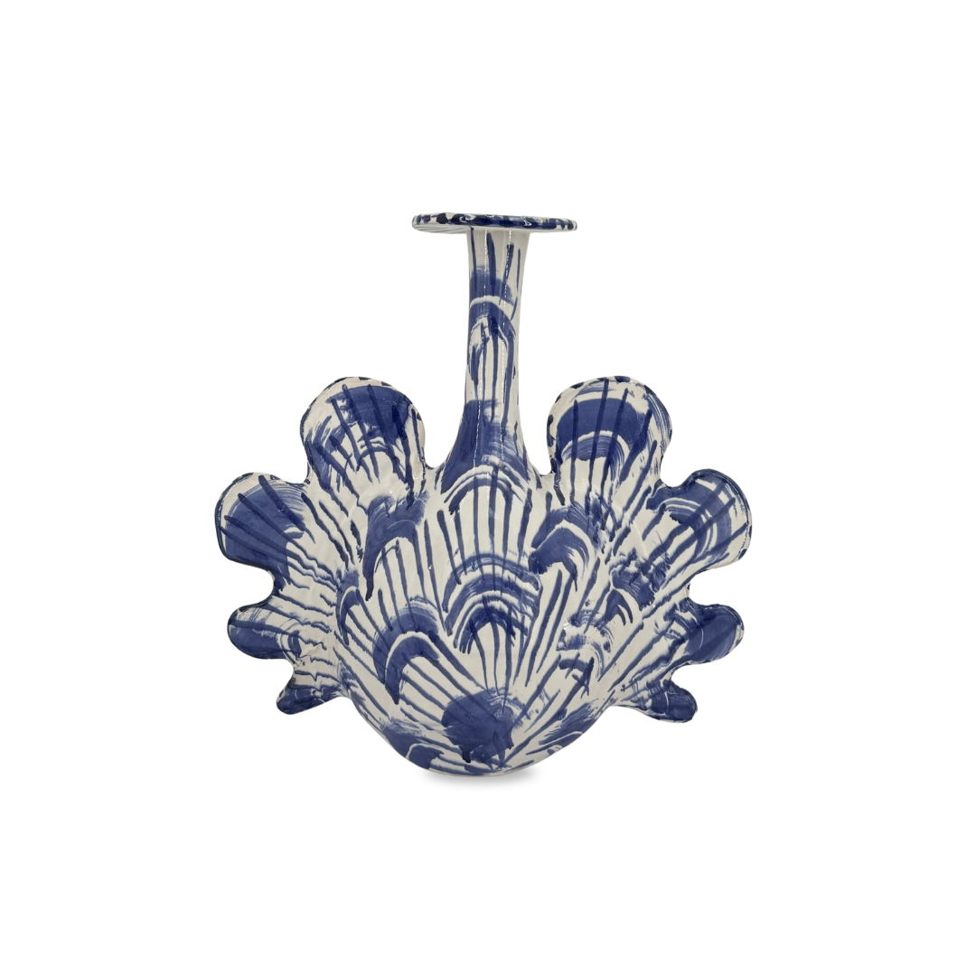 Each ornamental vase in this collection has been made by hand in the studio of Anthony Shapiro in Cape Town and then painted by Lucie de Moyencourt for Shellegance. Shellegance feels very lucky to collaborate with such a respected ceramicist as Anthony and his studio, as it takes years to master the medium to build large vases like this. These vases were built on the wheel, with joints etc done by hand.