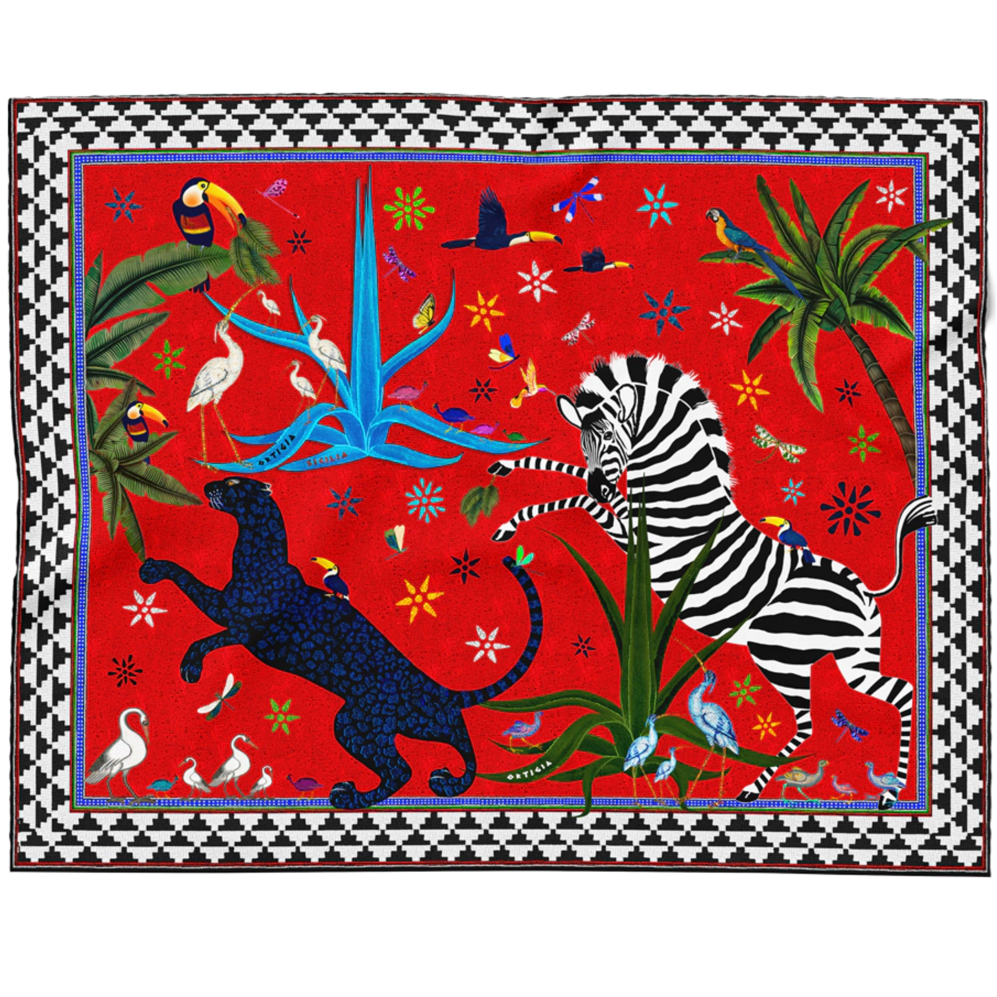 Ortigia Sicilia Ocelot Silk Scarf Flying Tiger Petrolio