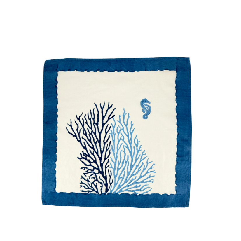 Stamperia Bertozzi Reef Blue Linen Napkin