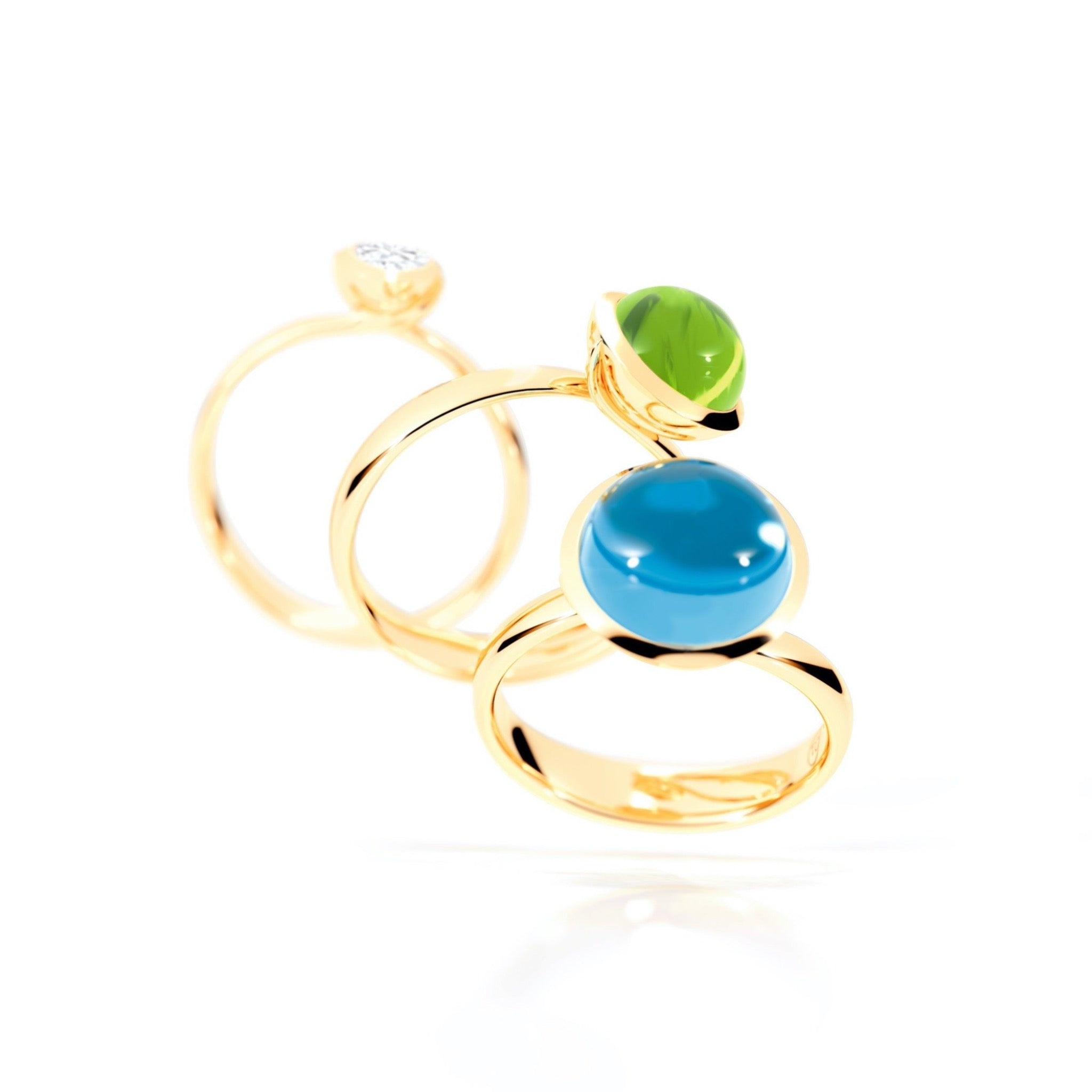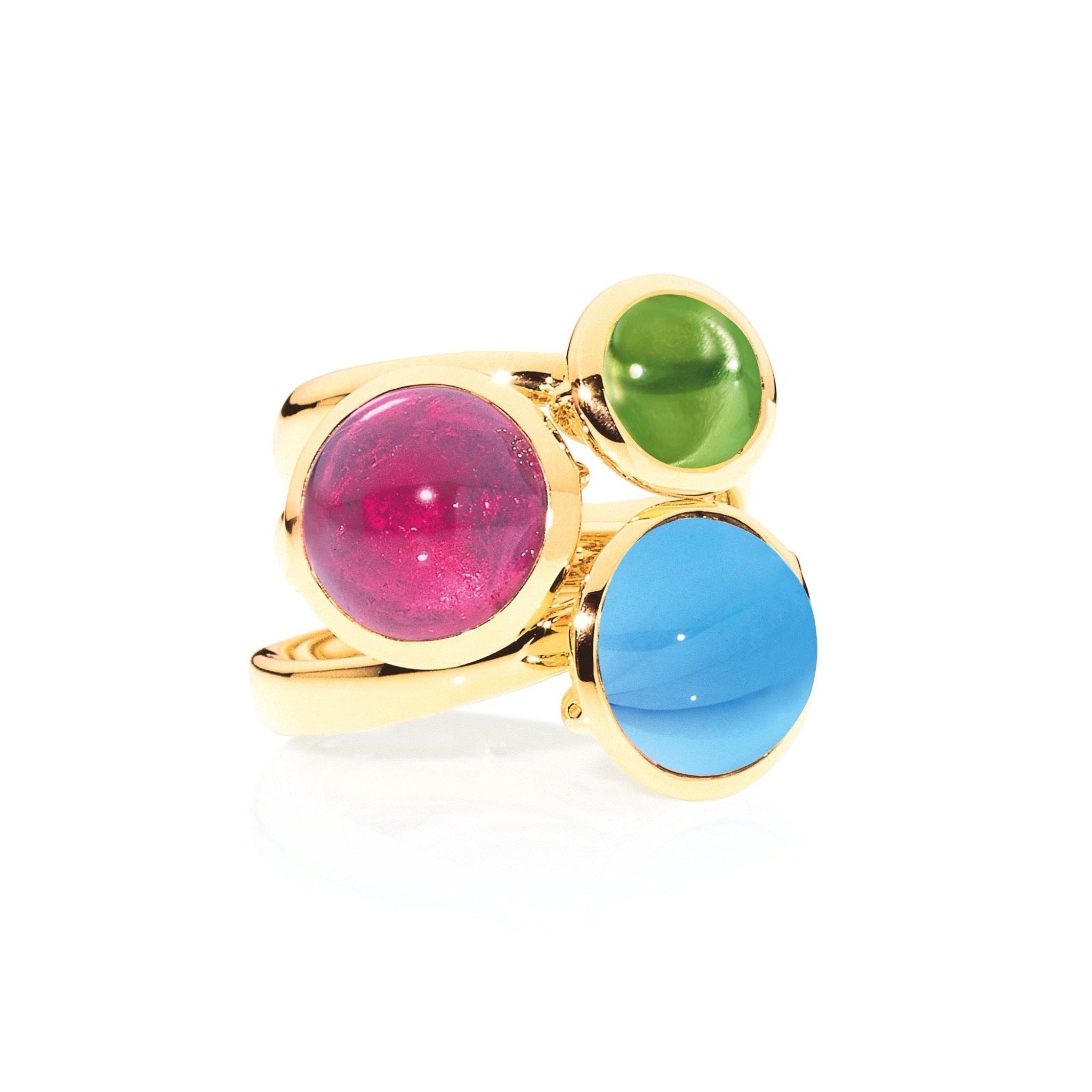 The Bouton Large Ring in 18K gold features a bright, vibrant blue gemstone, reminiscent of clear skies. Designed with exceptional craftsmanship, it can be worn on its own to let the beauty of the stone shine or stacked with other Bouton rings in various sizes for a one-of-a-kind look.