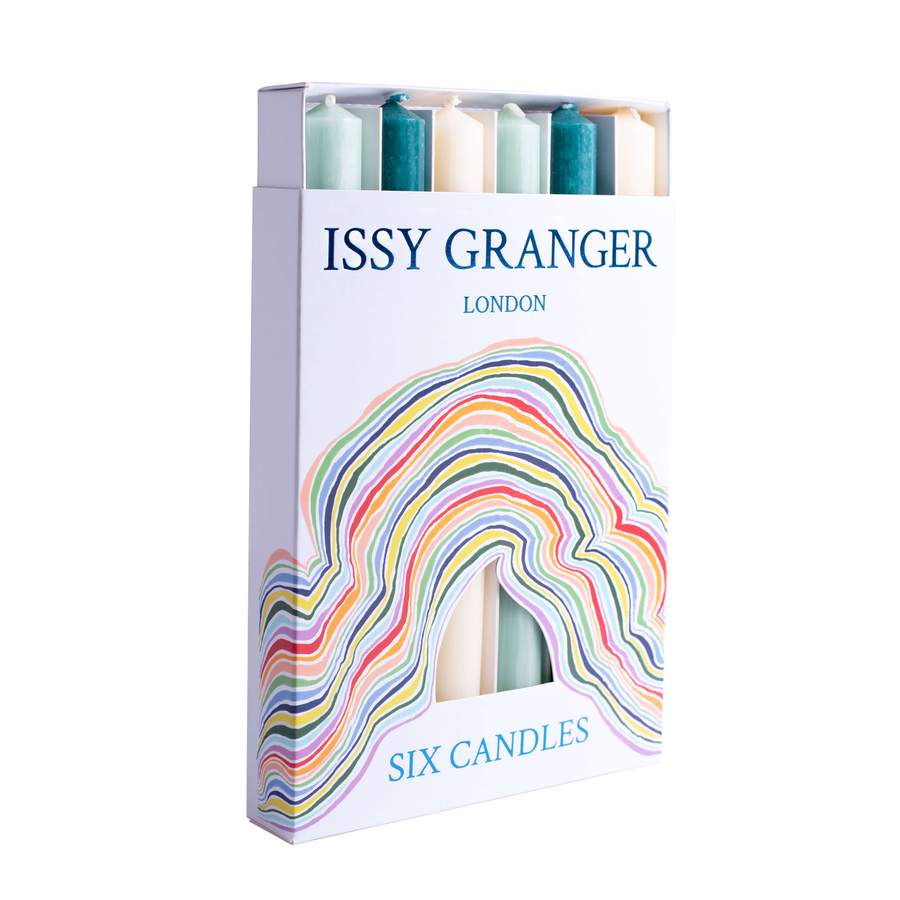 Issy Granger's chic Dinner Candles are hand drawn using traditional techniques on the South West coast of England. The candles are hand packaged in an Issy Granger candles box and come in a set of six.