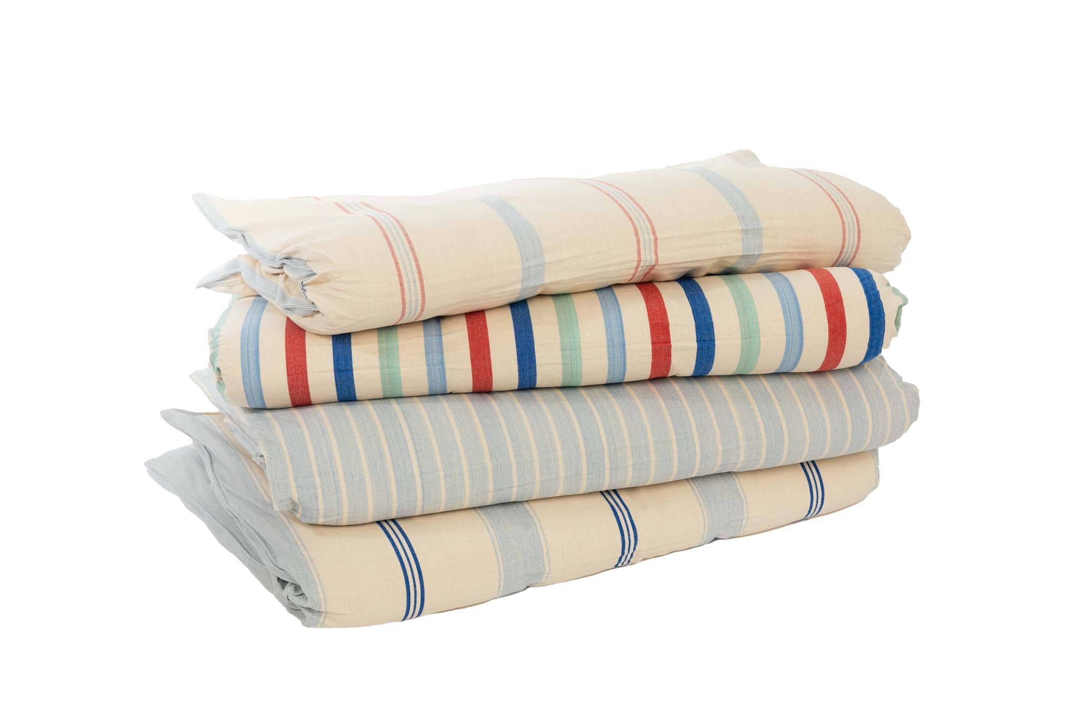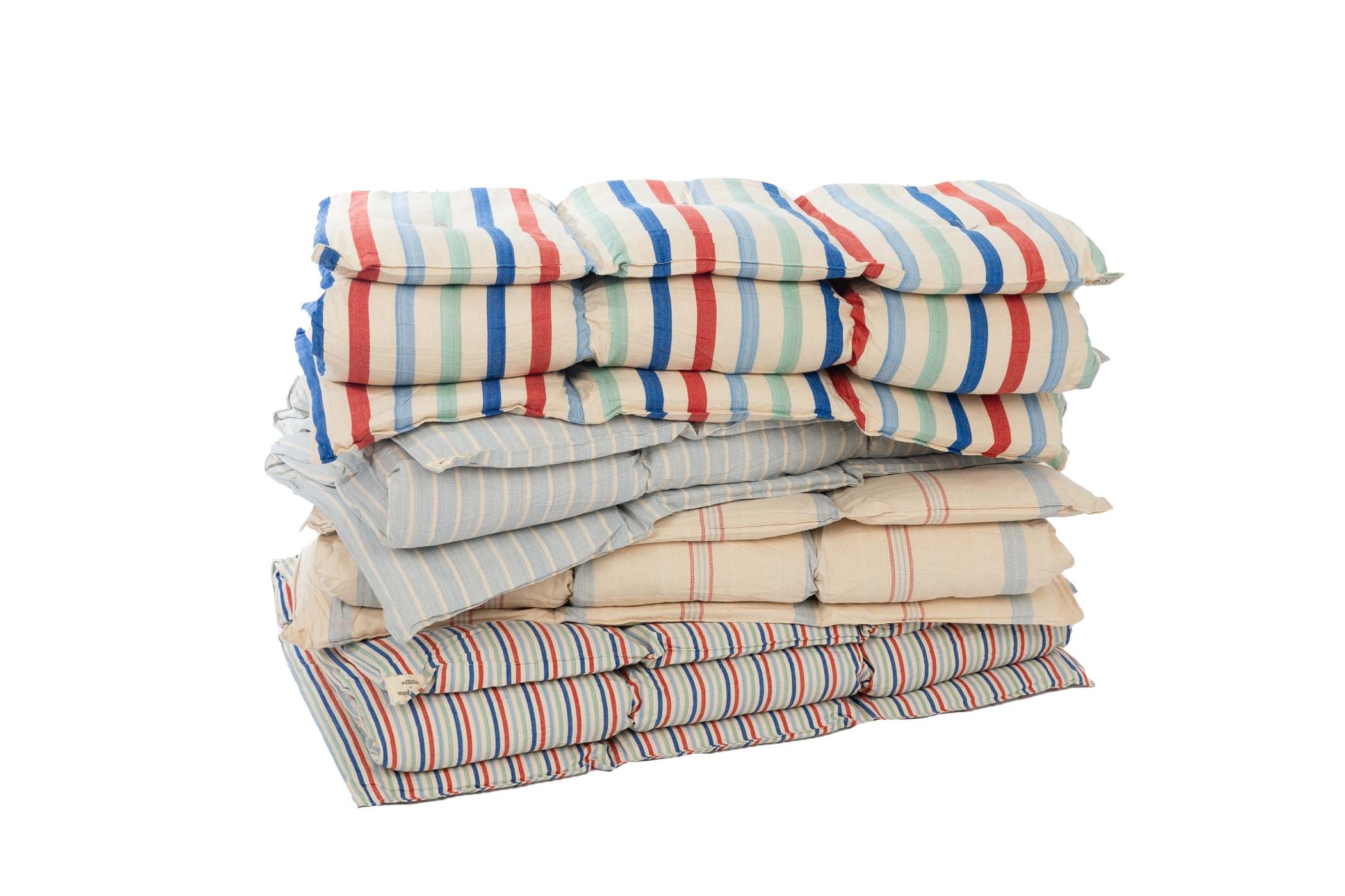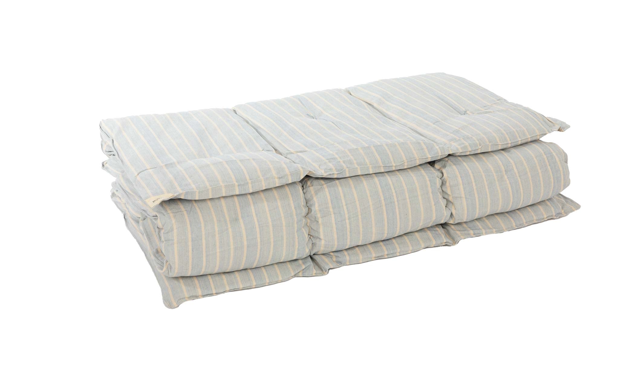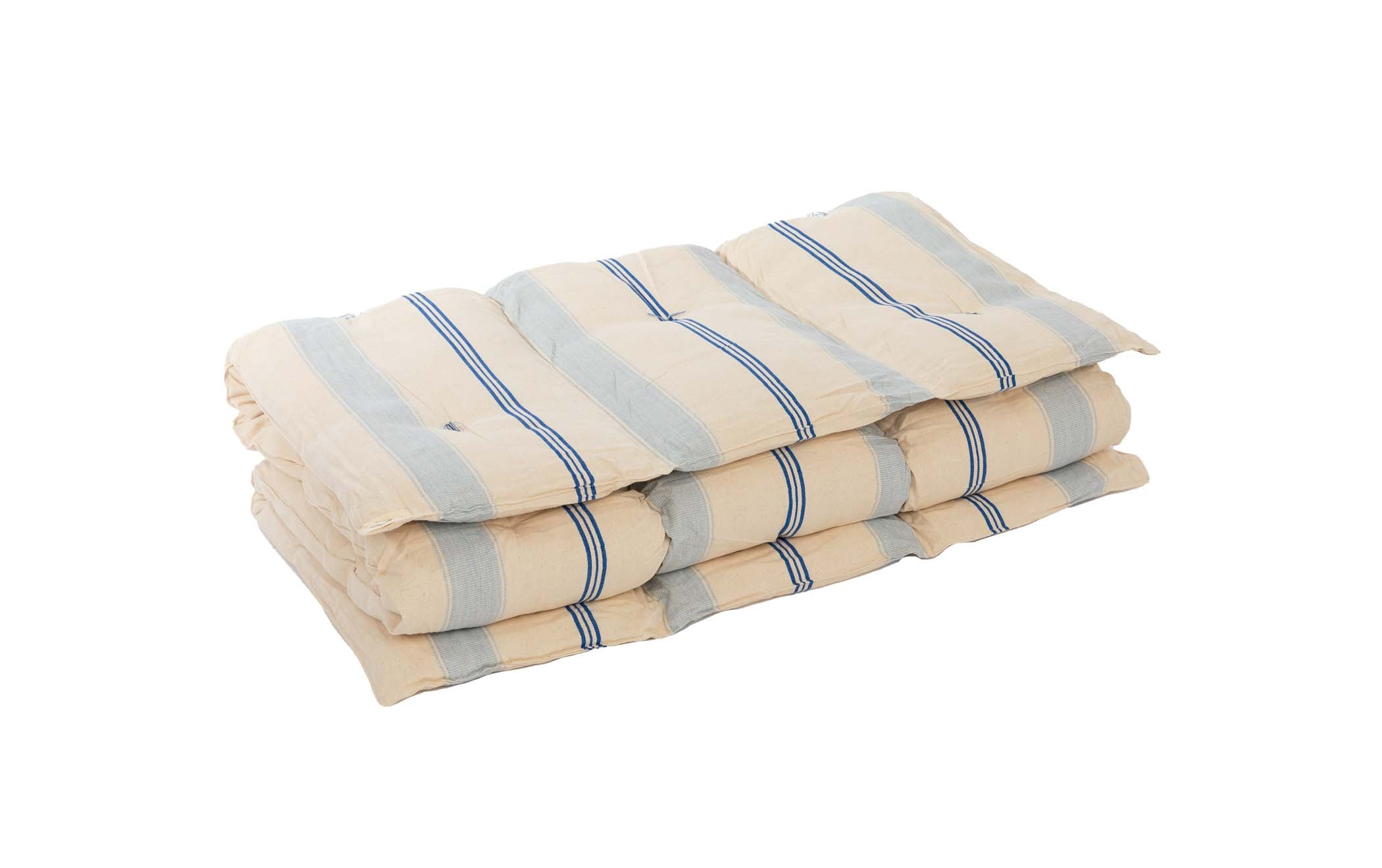 Tensira quilted mattresses are made from hand-woven, hand-dyed cotton and come in a variety of beautiful colors including Tensira’s famous indigos. They are incredibly comfortable and are completely natural thanks to the Kapok filling, a silky 100% natural and hypoallergenic-fiber. This fiber grows in the pod of a Kapok tree, which is called a silk-cotton tree due to the very silky touch of the fiber and its characteristics.