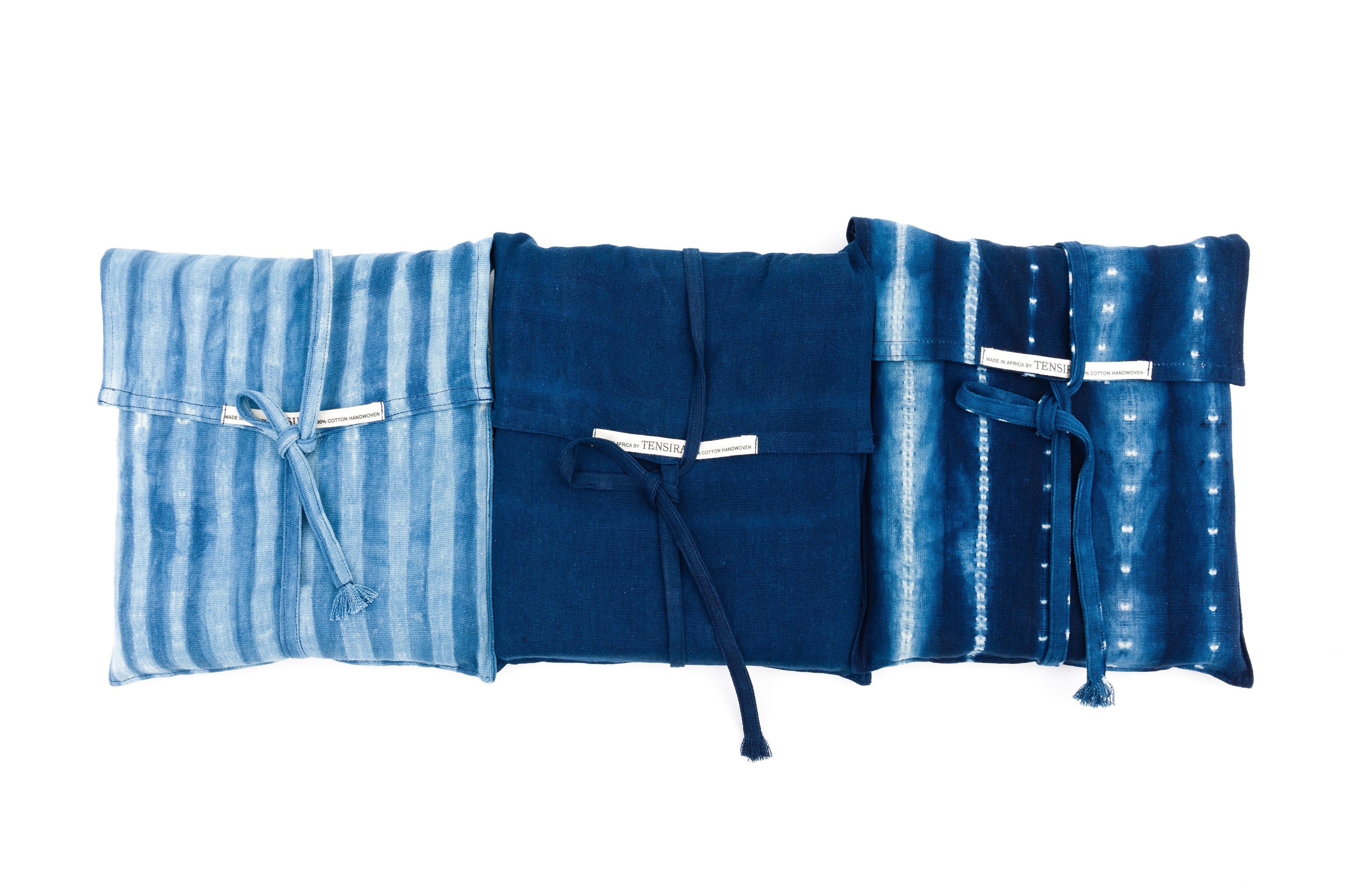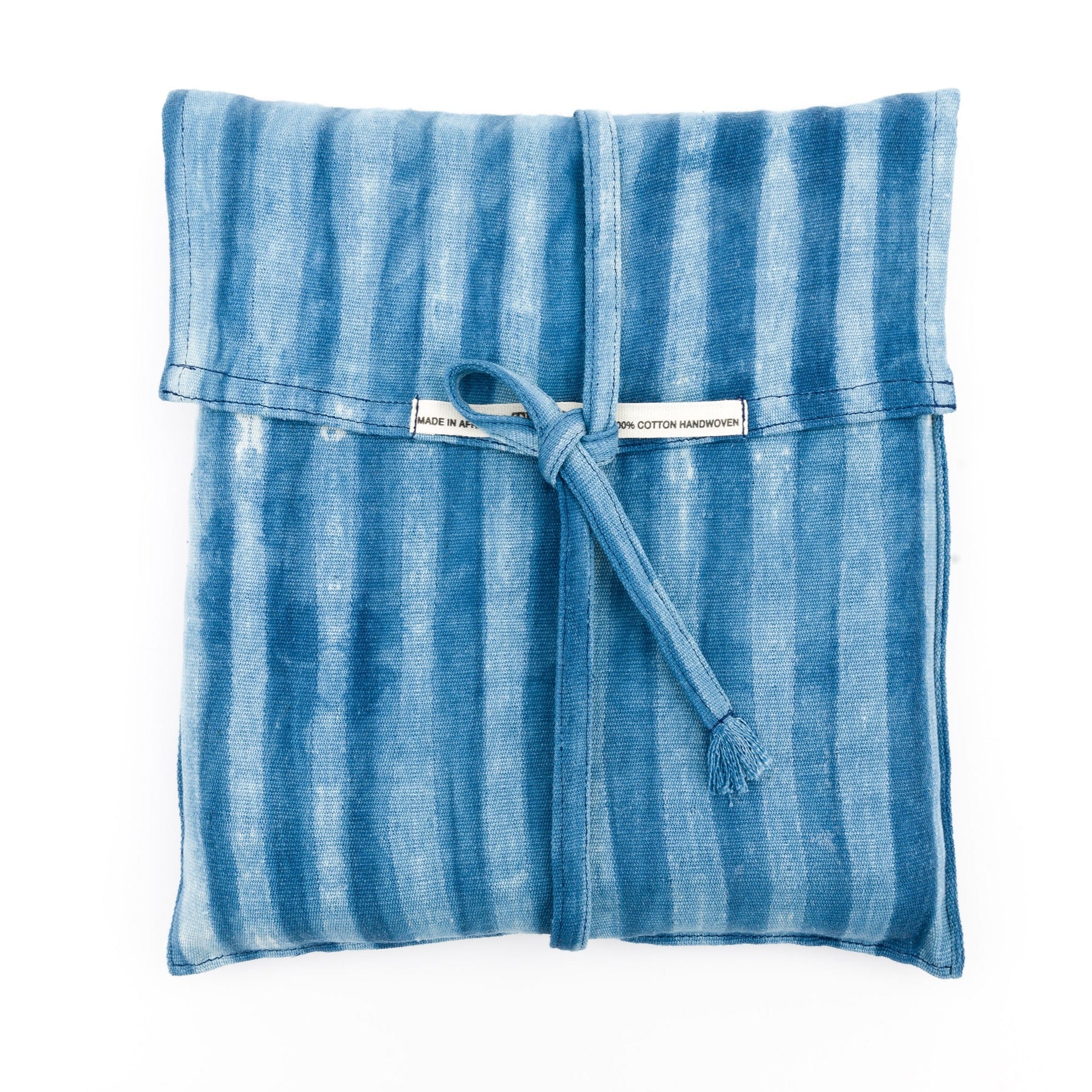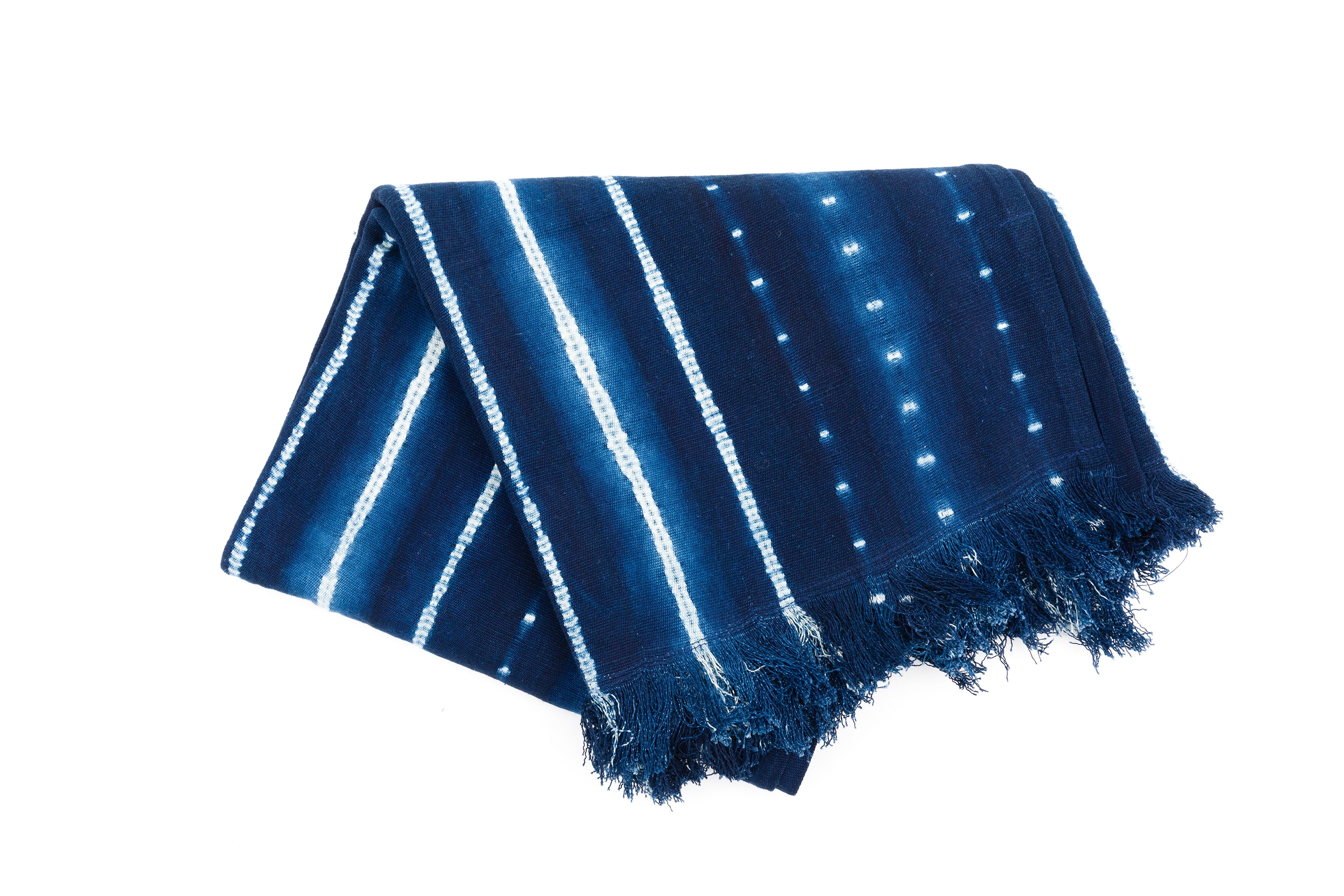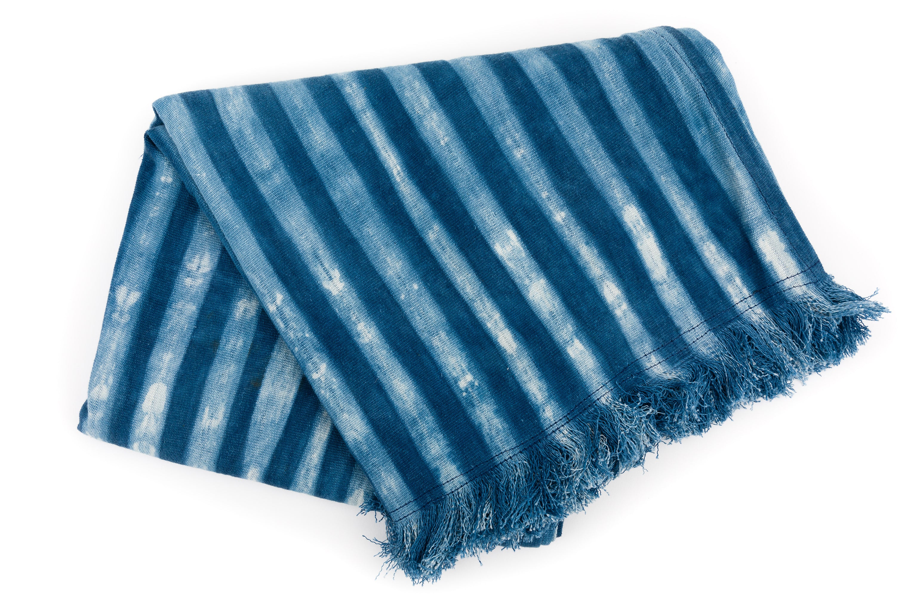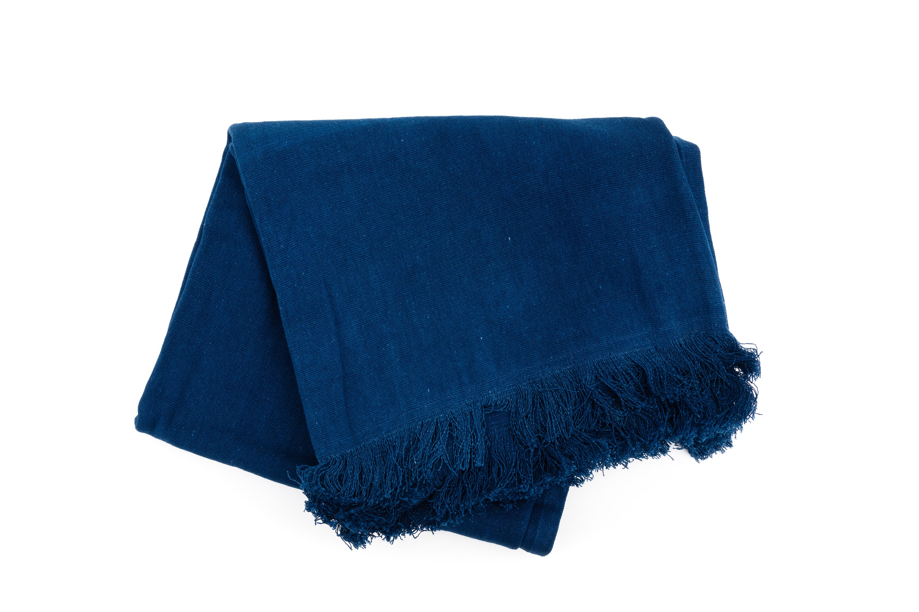 Our indigo cotton throws have a fringed edge and come with a matching pouch. They have many uses: for the beach, a picnic, or on the end of the bed or sofa.