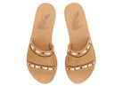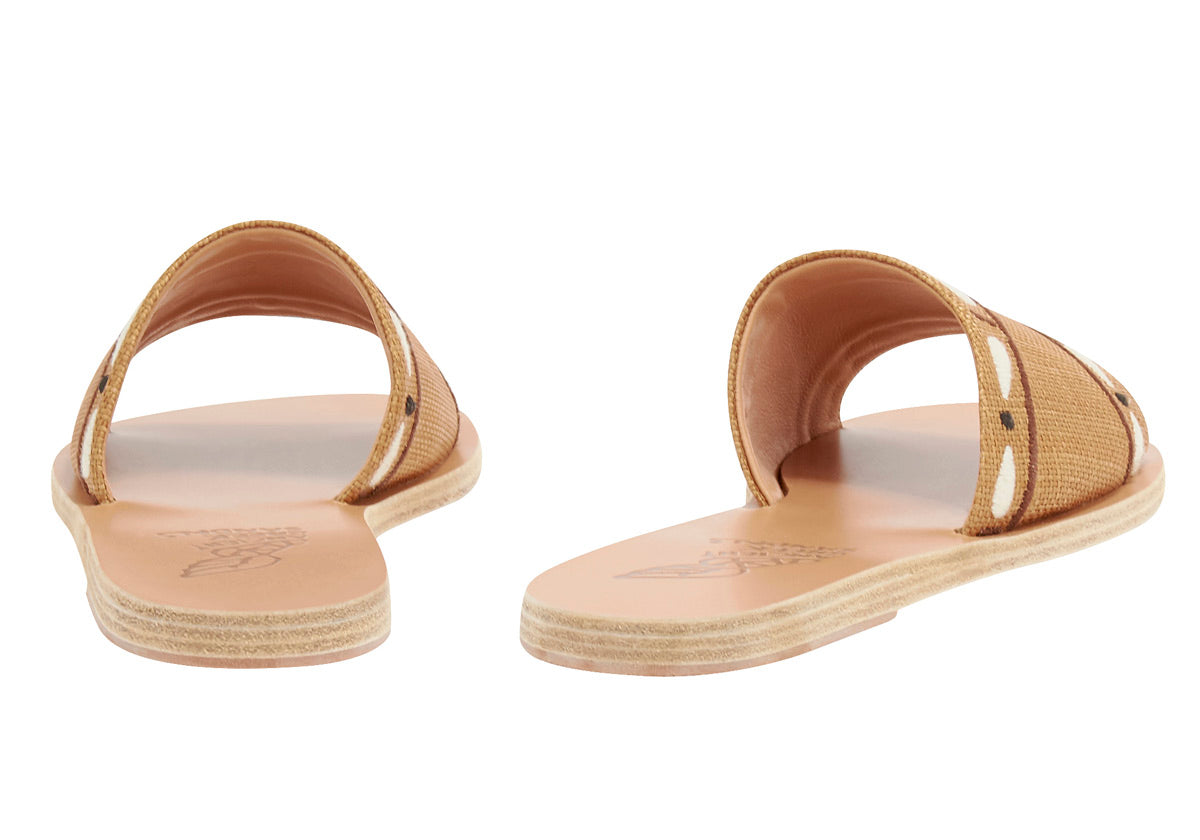 Ancient Greek Sandals is inspired by the myth of the gifted sandal maker of Crete, known for crafting magical sandals for the gods. Handmade by skilled craftsmen using traditional techniques, the sandals feature raw, natural leather that ages beautifully over time. The signature champagne-colored winged buckle references the legend of Hermes' flying sandals. Made in Greece.