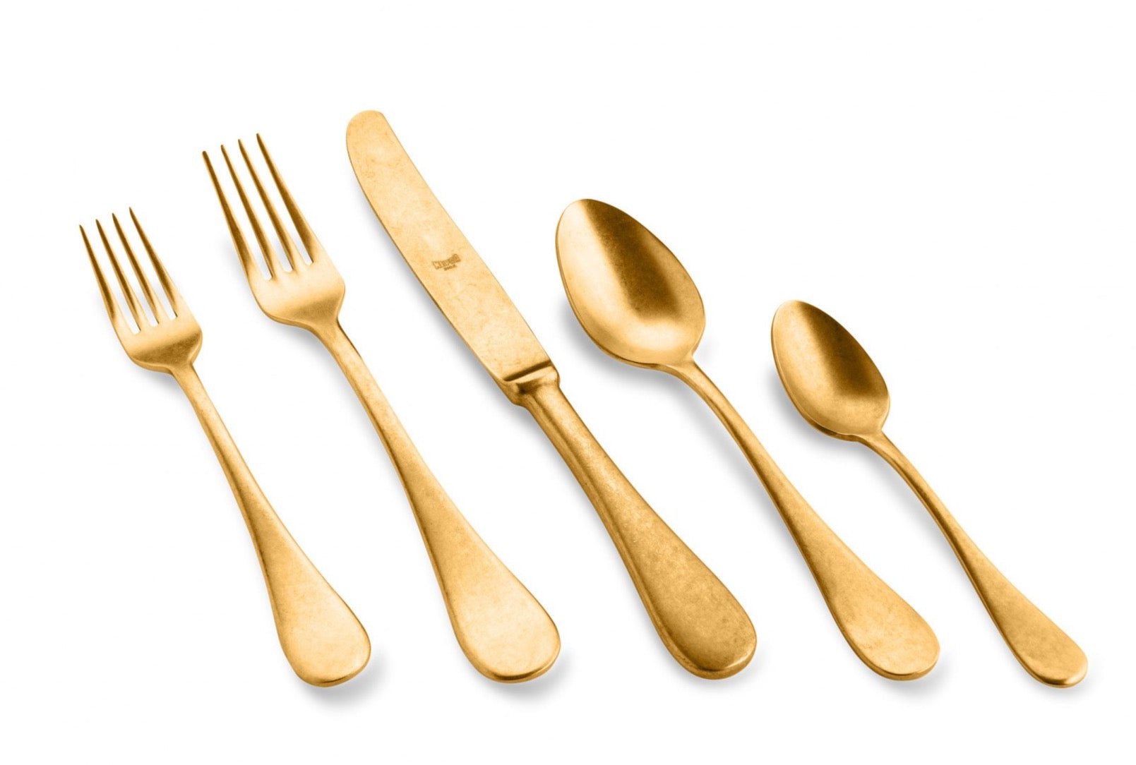 This Italian-made flatware set is elegant, modern and balanced. Made of thick stainless steel, the finish won't corrode or stain. The fork prongs are inside-machined for lifetime performance, and the knives have finely tooled serration for effortless cutting.