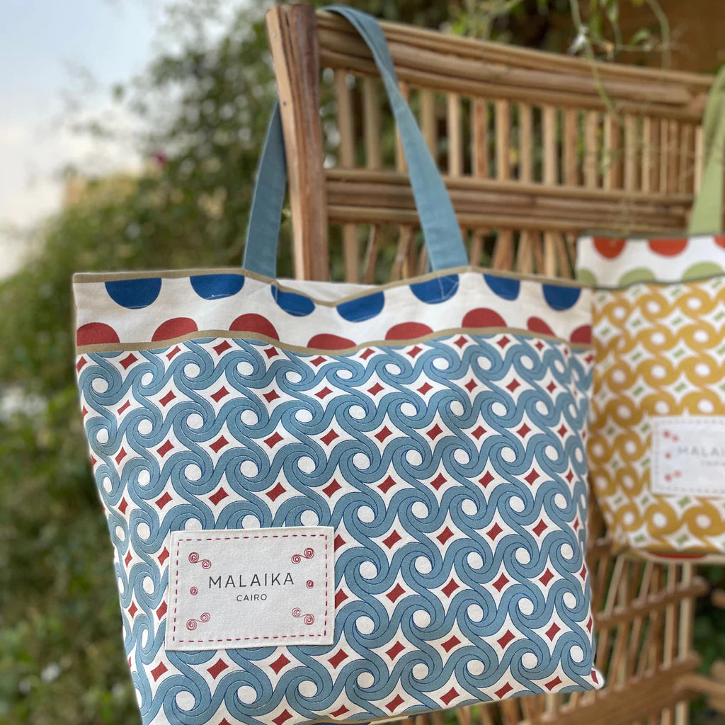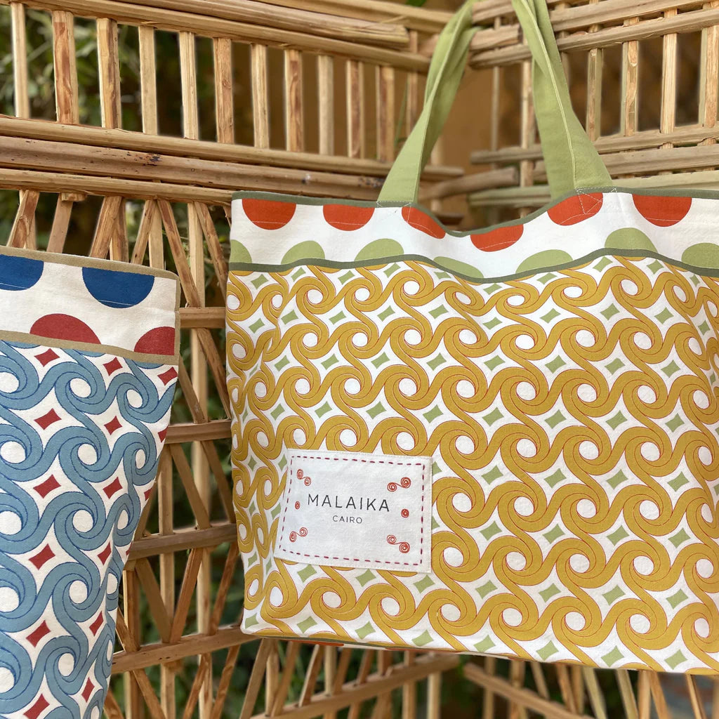 Silk screen printed by hand, by the Malaika team in Cairo.