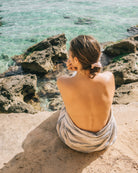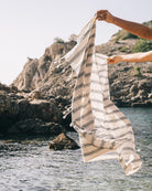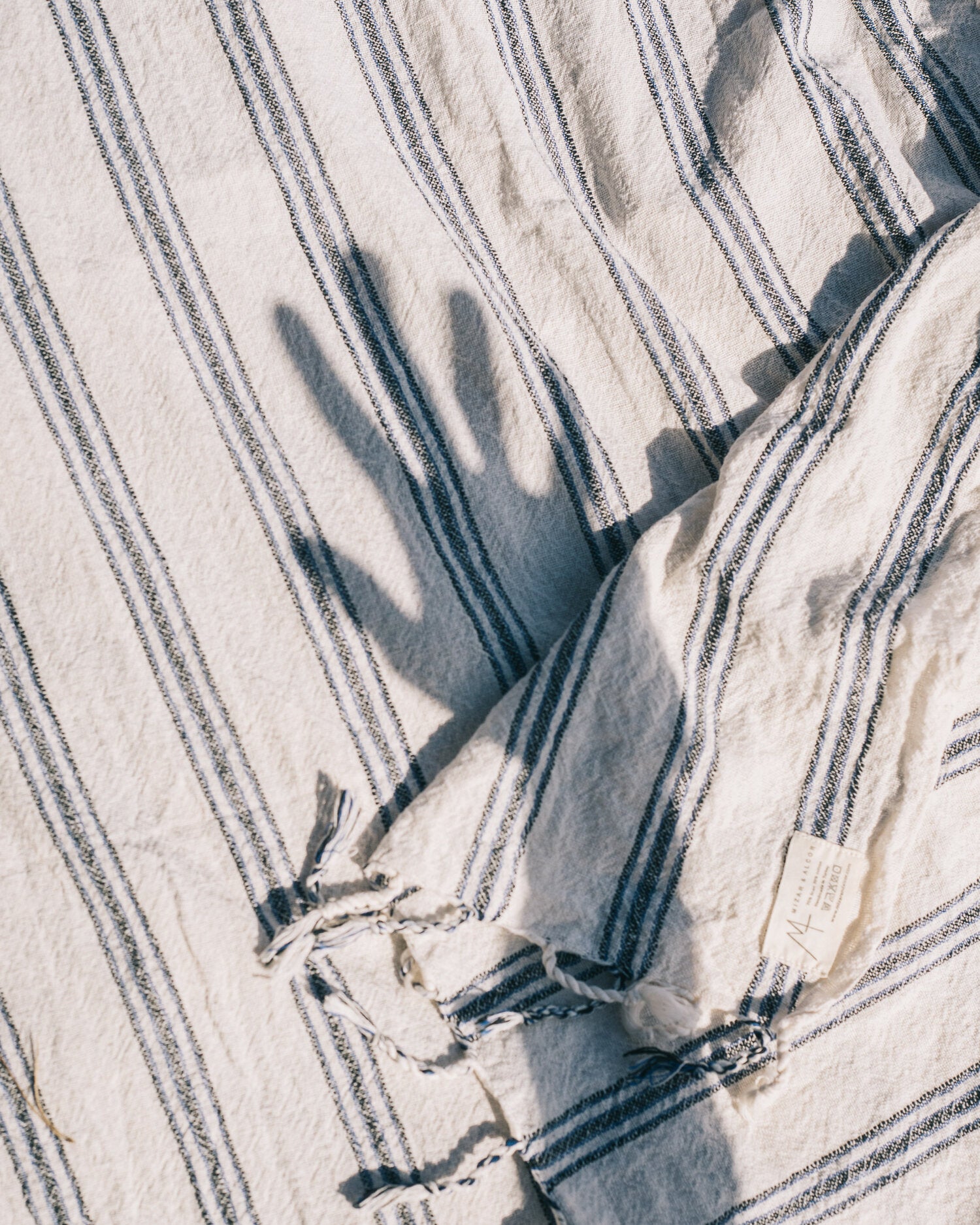 Sapphire Towel reflects the minimal lines of the contemporary era and the earthy texture of the Mediterranean. Handwoven by artisans in Anatolia using locally sourced raw cotton/linen blend.