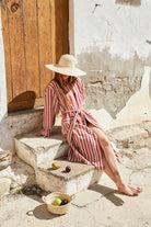 Inspired by Slim Aarons 70's, the Striped Red Robe carries the minimal lines of the contemporary era and the elegance of linen.