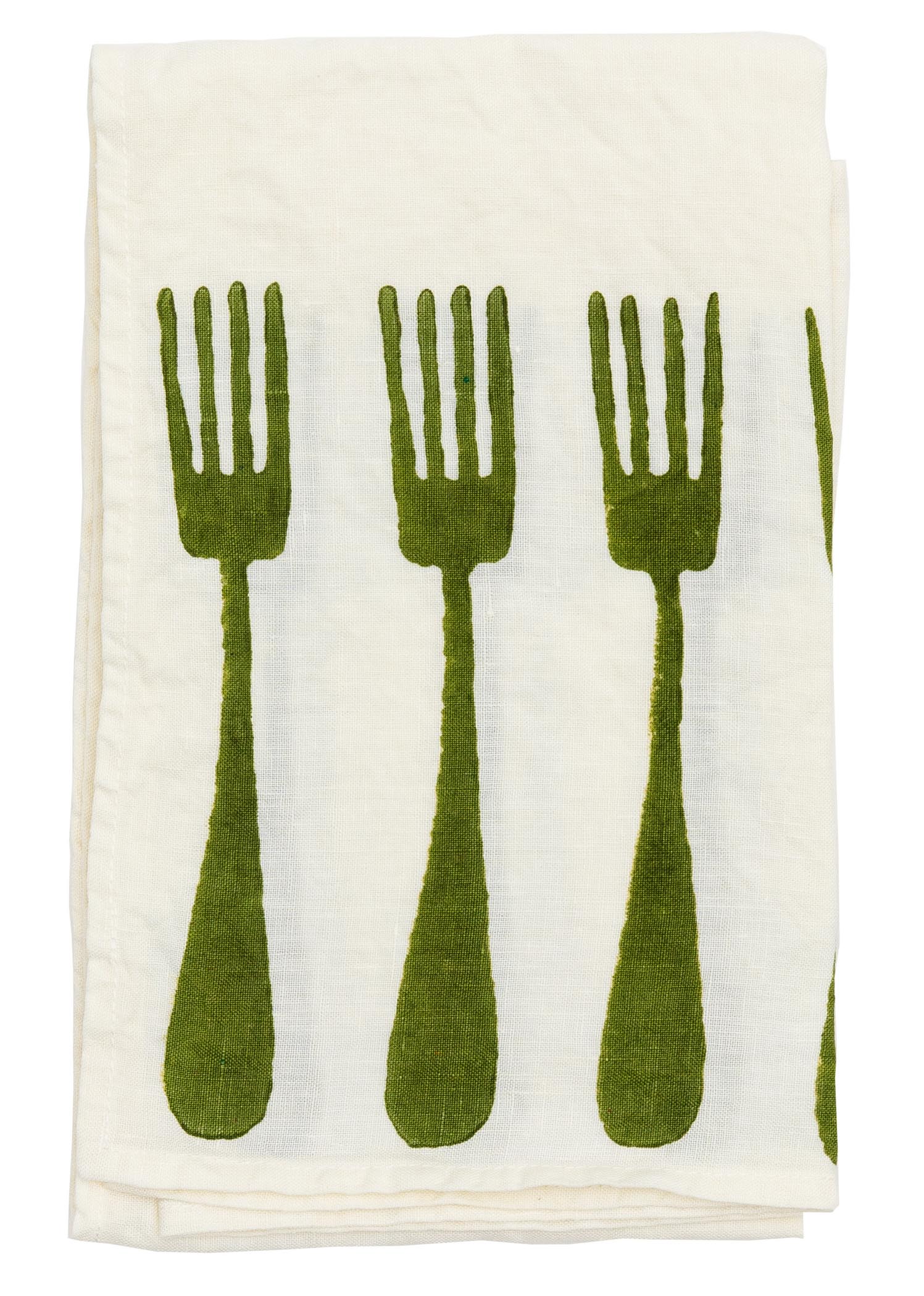 Stamperia Bertozzi Forchette Linen Tea Towel (Green)