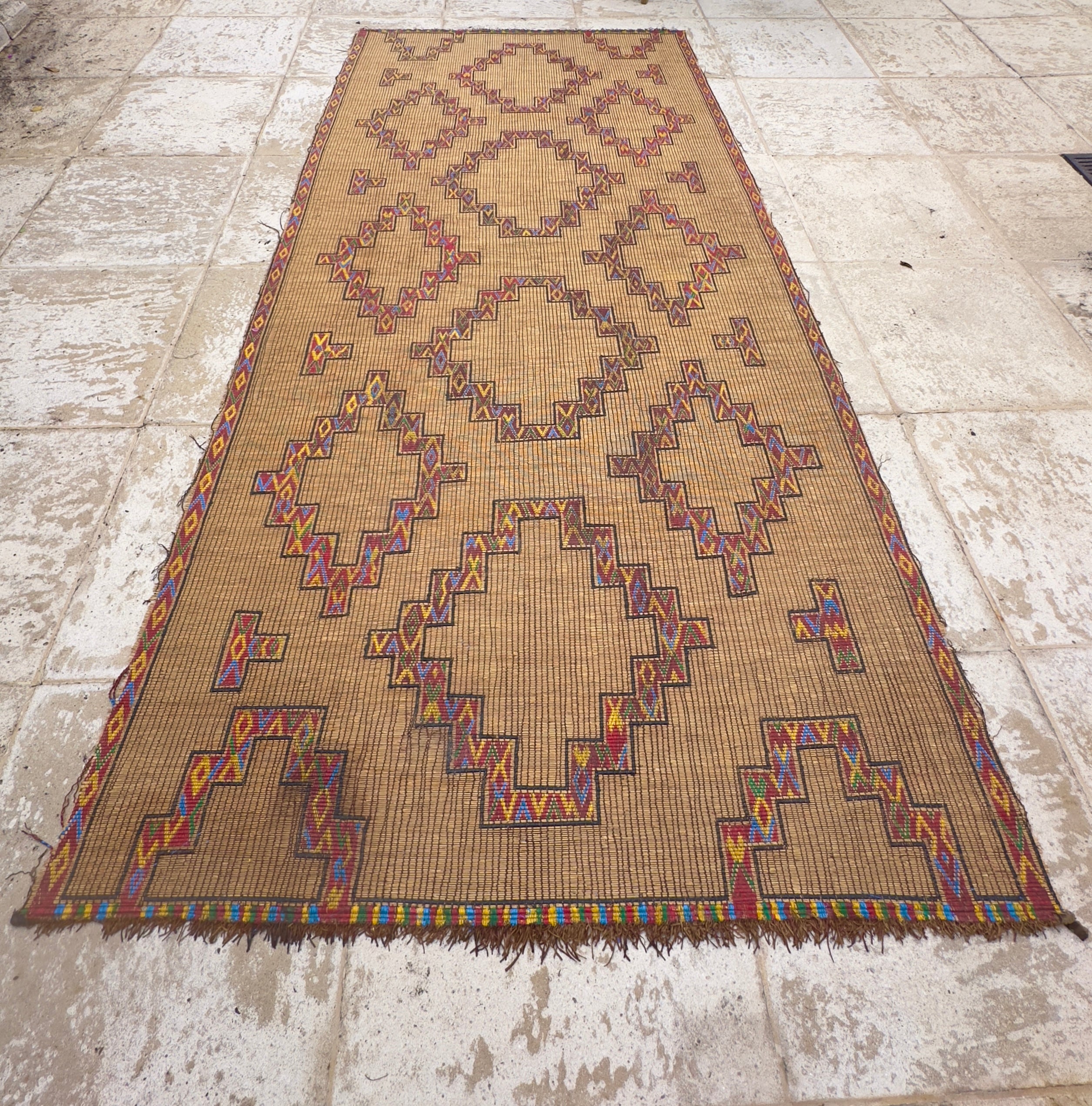 This vintage Mauritanian mat is handwoven by Tuareg tribes in Morocco.