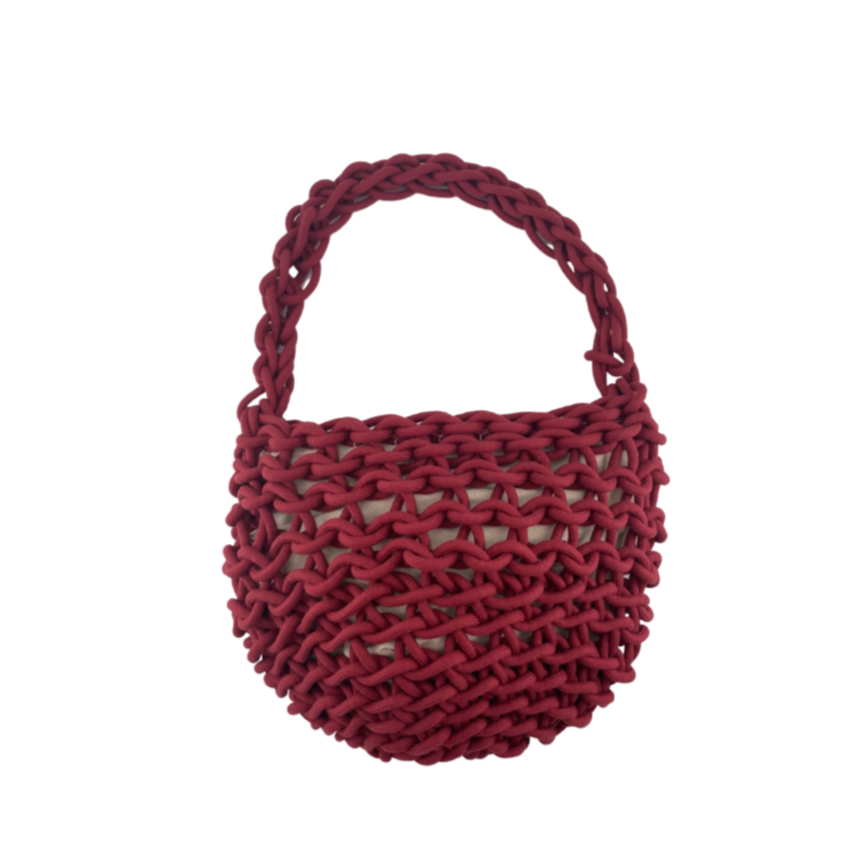 This sustainable handbag, handcrafted in Perugia, Italy from organic cotton ropes originally produced as cotton wicks for oil lamps. Each piece is handmade and thus unique.