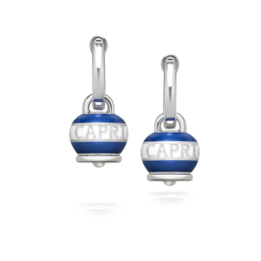 Small Et Voilà Capriness Dolce Vita Campanella earrings in silver and white and blue enamel.